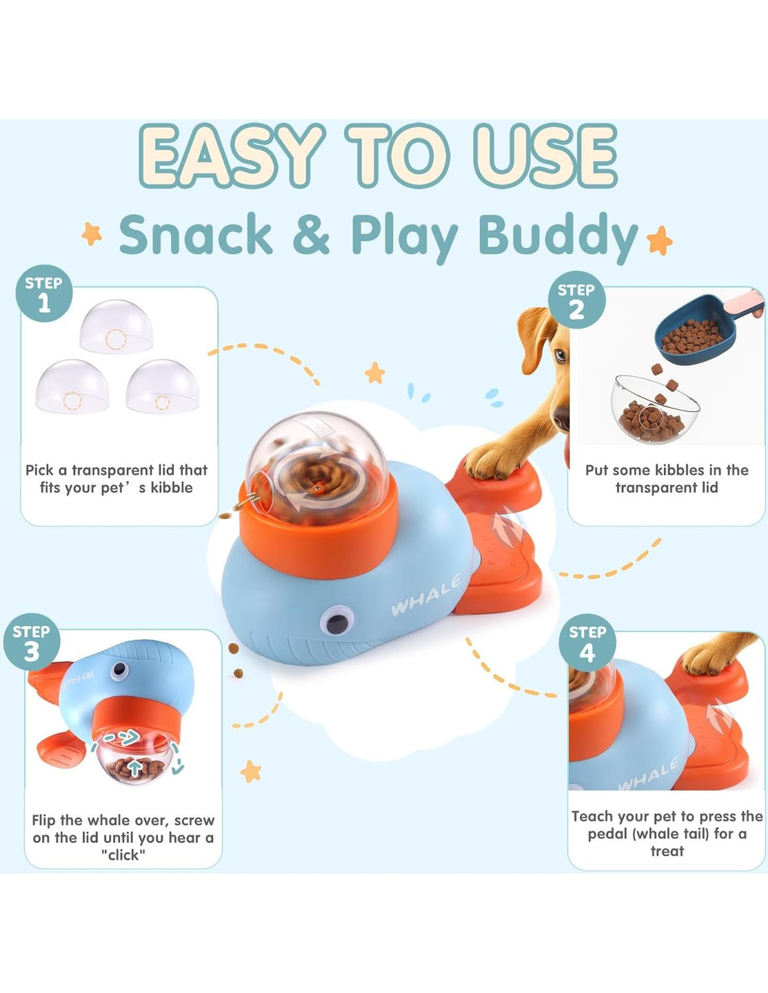 - [Comedero de Rompecabezas en Forma de Ballena para Diversión] Simplemente presiona la cola de la ballena para liberar golosinas del contenedor giratorio. Este juguete de rompecabezas para perros estimula la actividad mental, fomenta la alimentación lenta y hace que la hora de la comida sea emocionante. Ideal como un rompecabezas de comida para perros o dispensador de golosinas para gatos, añade diversión mientras apoya hábitos alimenticios saludables.