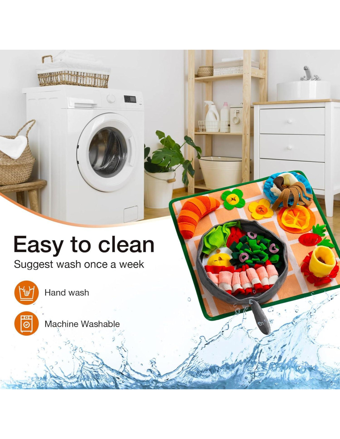 - Juguetes Squeaky Removibles: Un lado de la alfombra cuenta con juguetes squeaky desmontables que despiertan la curiosidad de tu perro y lo mantienen entretenido. Los sonidos de los squeaks atraen la atención de tu perro, haciendo que el tiempo de juego sea más agradable.