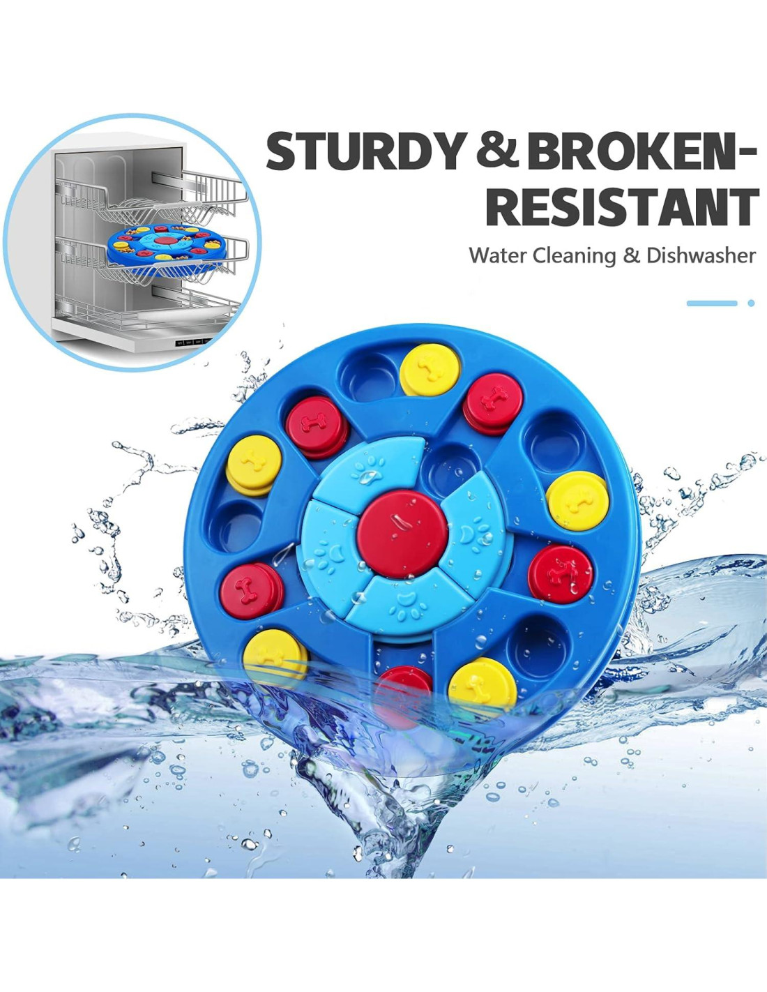 - [JUEGO DE ROMPECABEZAS PARA PERROS] Los perros grandes, cachorros y gatos principiantes AMAN jugar con los juguetes de rompecabezas para perros, el juego de perros de GIRAR & DESLIZAR, ESCONDER y BUSCAR interesa mucho a los perros y gatos. El juego de rompecabezas para perros puede fomentar en gran medida los instintos naturales de caza de las mascotas, mantener a los perros inteligentes tratando de resolverlo a través de pasos, usando su nariz y habilidades con las patas. Los perros se emocionan y se activan, no se sienten aburridos.