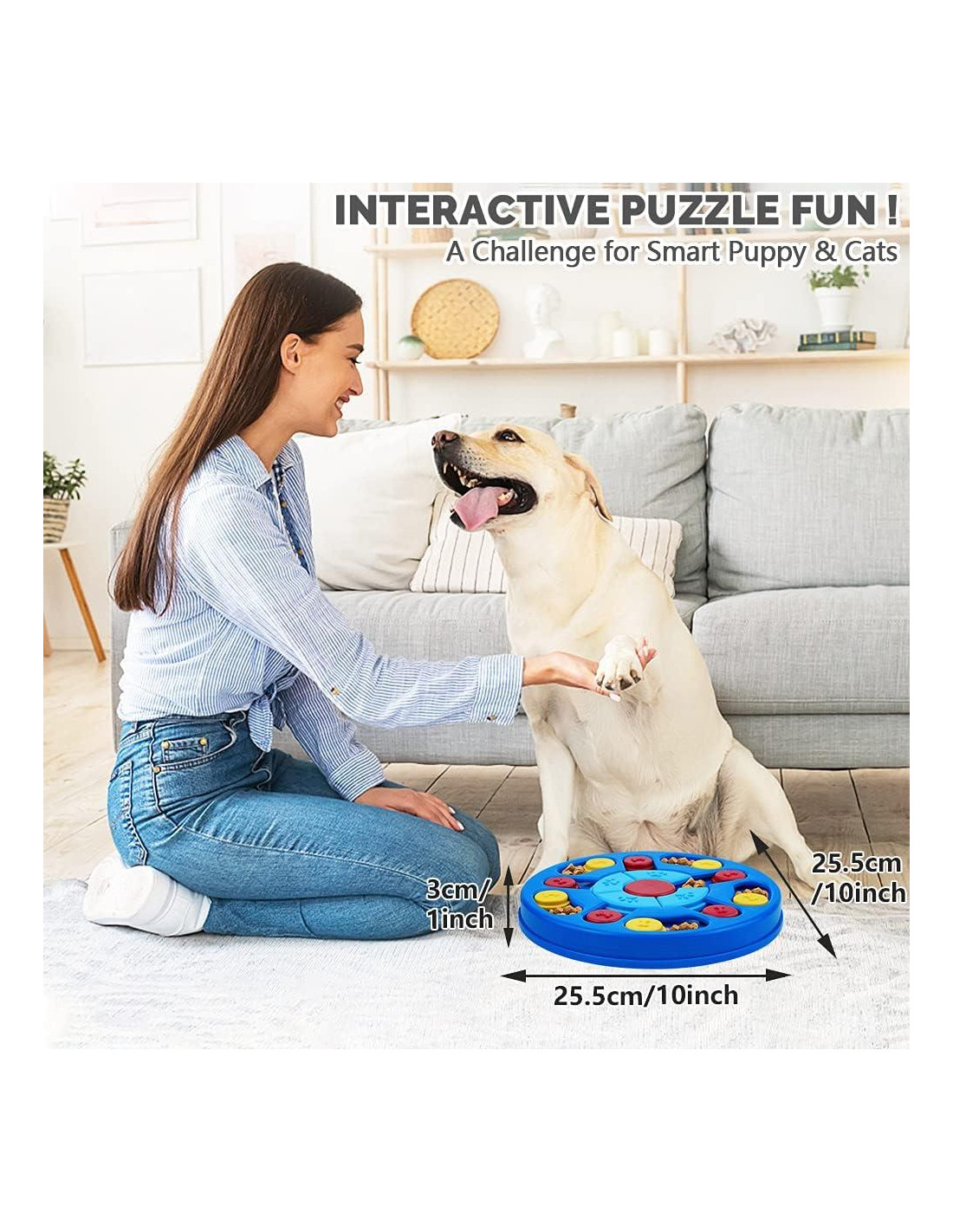 - [JUGUETES INTERACTIVOS PARA PERROS] El juguete de juego de rompecabezas para perros puede jugarse SOLO por las mascotas, pero también es un gran rompecabezas interactivo para perros para divertirse. Ofreciendo un juego de rompecabezas interactivo entre tú y tus cachorros, te gustaría pasar tiempo con tu perro para enseñar y alabar, recompensarlos cuando terminen el desafío. Y ellos están felices de verte orgulloso de ellos cuando resuelven el rompecabezas.