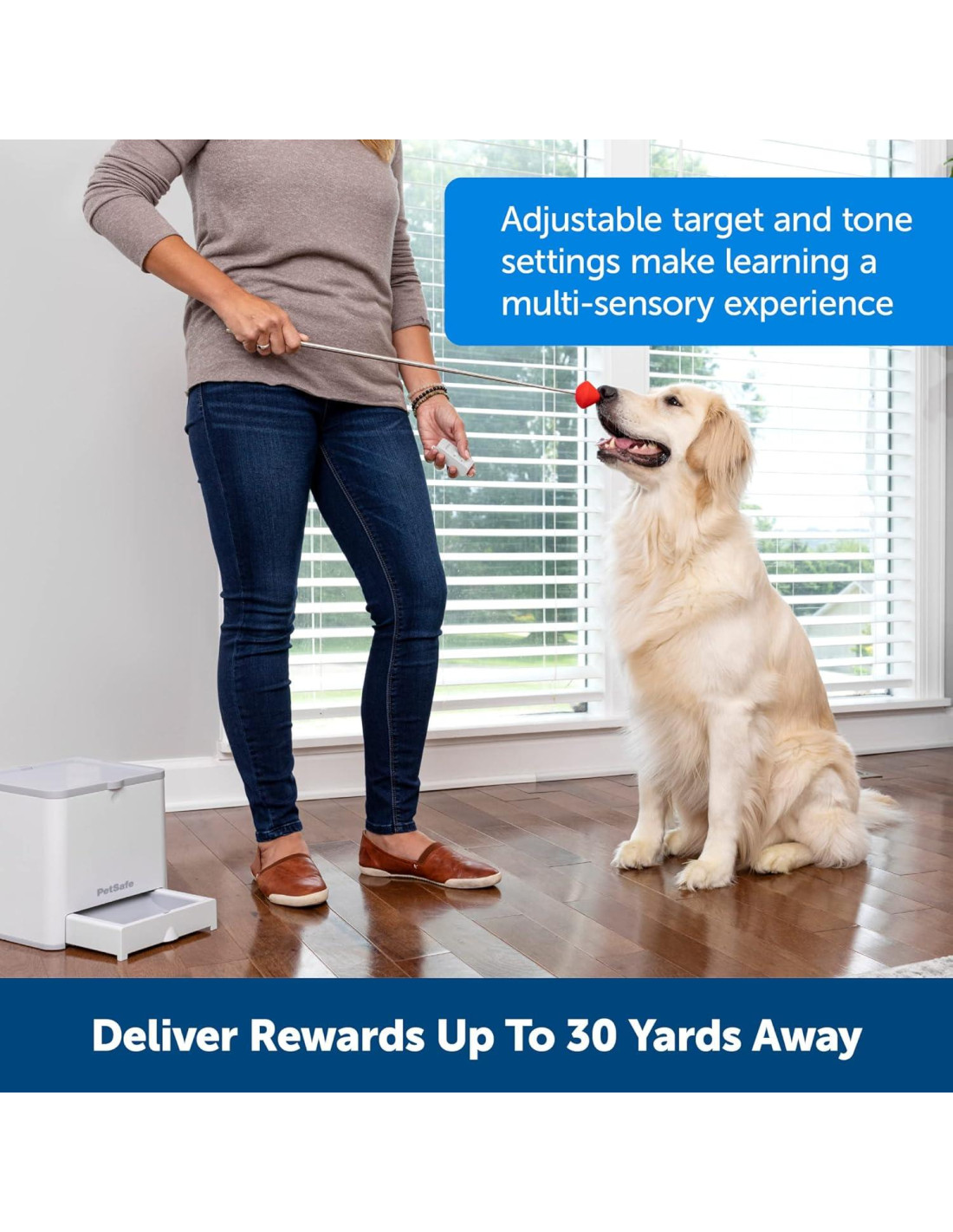 El tiempo y la consistencia son críticos para ayudar a tu perro a aprender. El Entrenador de Recompensas Remoto Teach & Treat es una gran herramienta para ayudar a los perros a aprender porque permite a los dueños recompensar rápidamente a sus perros cuando obtienen los comportamientos que quieren ver. Usa Teach & Treat para desarrollar los comportamientos que deseas de tu perro, como sentarse, mantenerse tranquilo y responder a comandos verbales. Con solo presionar un botón en tu control remoto, Teach & Treat dispensará croquetas o golosinas premium desde hasta 27.43 metros (30 yardas) de distancia. Es ideal para perros de todas las edades y humanos que quieren tener un papel activo en el entrenamiento de sus perros. Todo lo que necesitas para enseñar a tu perro a sentarse, quedarse y más viene con el Teach & Treat. Obtendrás acceso a videos tutoriales dirigidos por un entrenador certificado que te guiará en cada paso del camino, asegurando que obtengas el máximo provecho de tus sesiones de entrenamiento. Tu sistema Teach & Treat viene con un dispensador, control remoto y un objetivo para que tu perro corra hacia él. La unidad es ligera y portátil, transformando cada habitación de tu casa en un aula donde tu perro puede aprender nuevas habilidades o perfeccionar las antiguas. ¡Incluso puedes colocarla encima de la jaula de tu perro para que puedas soltar golosinas cuando se comporte en su propio espacio! La unidad funciona con 4 baterías D y las golosinas se dispensan con un motor silencioso, permitiendo que tu perro se concentre en el refuerzo positivo que el Teach & Treat le brindará. Tu mascota merece lo mejor. Confía en PetSafe para mantener a tu mascota saludable, segura y feliz.