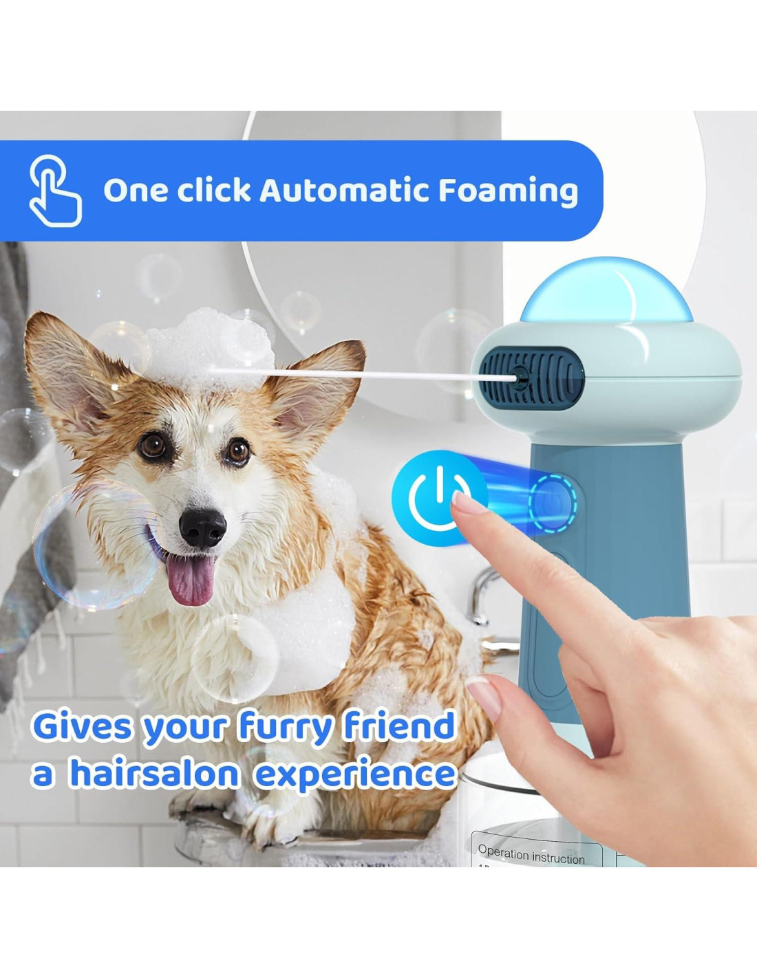 - Dispensador de Champú Espumoso Eléctrico: La máquina de burbujas será un excelente asistente para bañar a tu perro, y la forma misteriosa de UFO te permite disfrutar de un baño feliz con tu perro, gato o niño.