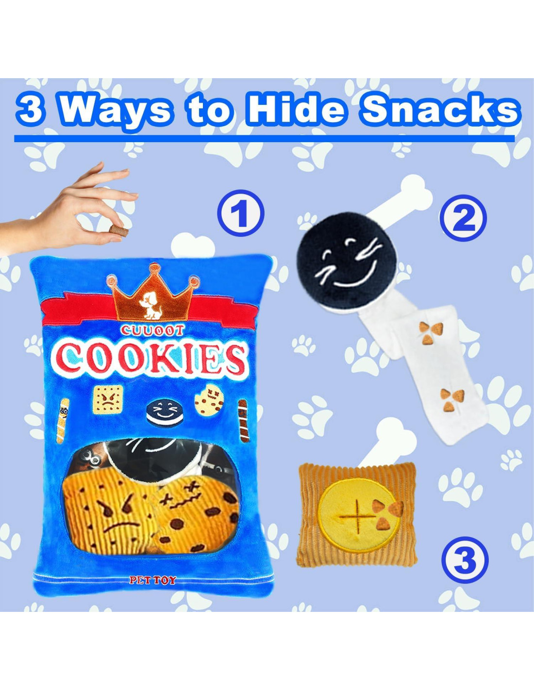- CARACTERÍSTICAS DE SONIDOS DIVERTIDOS QUE ATRAE A LOS PERROS: El juguete para perros CUUOOT con sonido crujiente está equipado con papel crujiente y squeakers incorporados. A los perros les gustan los juguetes con mucho sonido, nuestros juguetes que hacen ruido pueden emocionarlos y aliviar el estrés y la ansiedad.