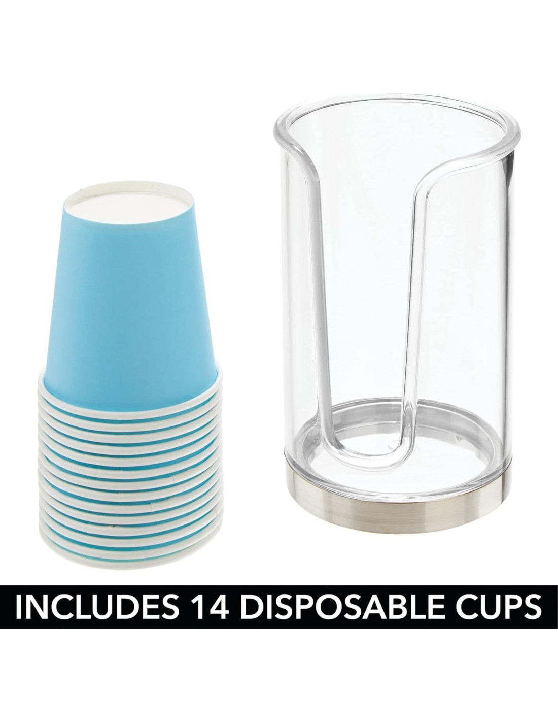 Mantén los vasos de enjuague o bebida siempre al alcance de tu lavabo de baño con el Dispensador de Vasos de Papel Desechables de mDesign. El diseño pequeño y redondo se adapta a los mostradores o tocadores de baño sin abrumar tu espacio, o colócalo dentro de un gabinete de medicina para un almacenamiento más discreto. El frente bajo y la parte superior abierta facilitan tomar un vaso y llenarlo con agua o enjuague bucal. ¡Comienza a usar los dispensadores de inmediato con los ocho vasos de papel incluidos! mDesign - Soluciones para el Hogar. Soluciones para la Vida.