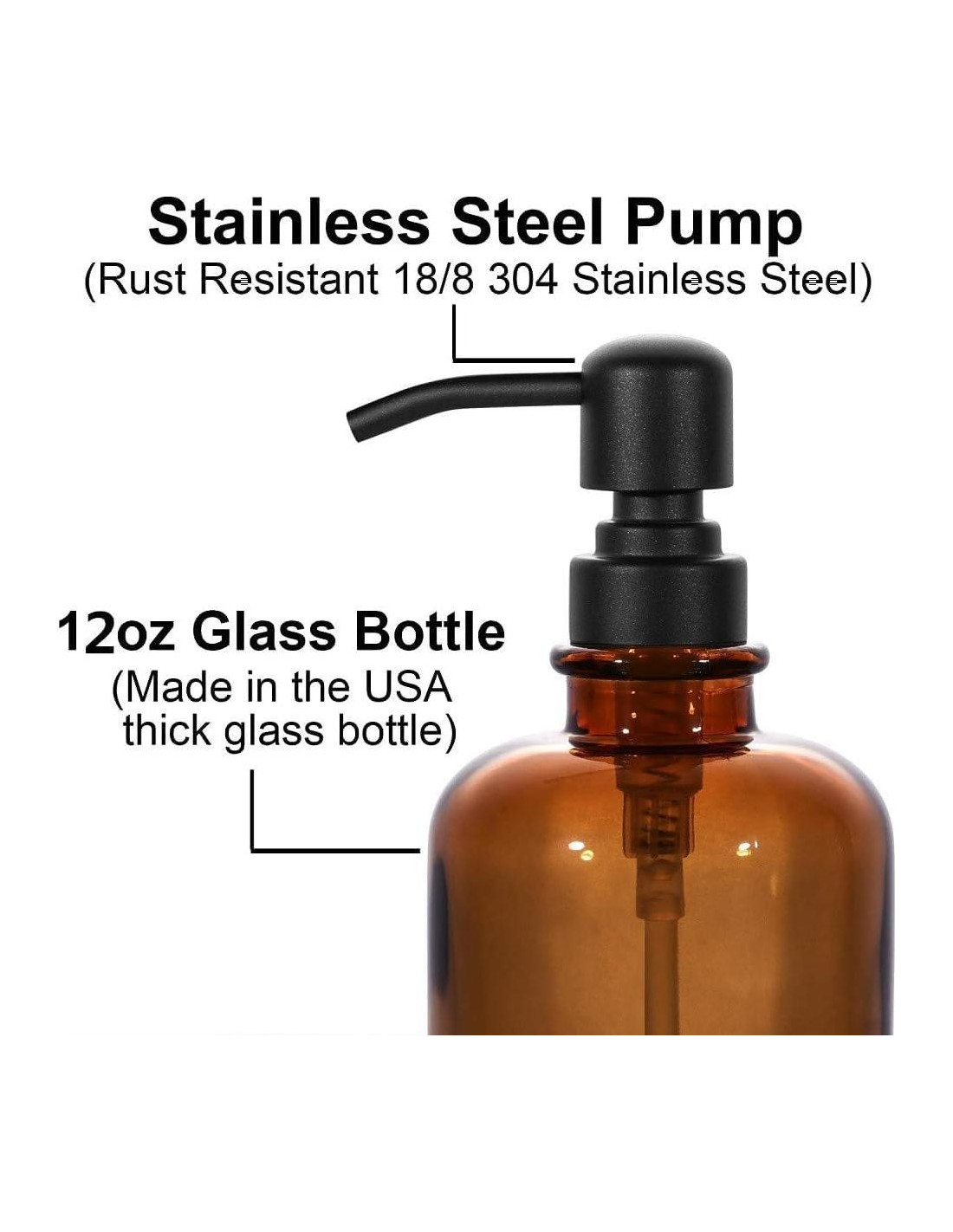 Este dispensador de jabón combina lo vintage con lo moderno y complementa la decoración de tu hogar, cocina y baño. Una botella de vidrio redonda Boston ámbar sin plomo te ayuda a mostrar el contenido Y ver cuánto te queda. La bomba dispensadora duradera está hecha con un exterior de metal real para mayor durabilidad y está recubierta de negro mate para proteger contra la corrosión. Diseñado para jabón líquido, desinfectante de manos, jabón para platos, mezclas de aceites esenciales, aceites de masaje, tratamiento quitamanchas, lociones, champú, enjuague bucal, aceite para bebés, etc. Capacidad: 12 onzas (0.35 litros) Tamaño: 7 pulgadas (17.78 cm) de alto con bomba, 3.3 pulgadas (8.38 cm) de diámetro de la botella Peso: 17 onzas (0.48 kg) cuando está vacío