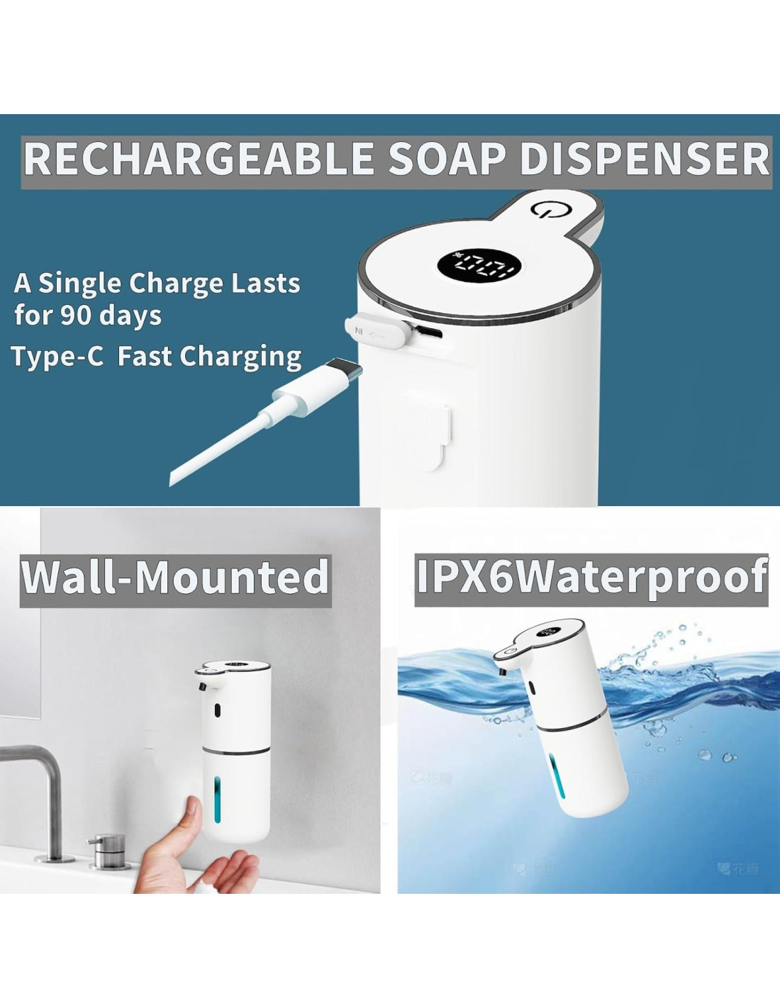 - Dispensador de Jabón Espumoso Impermeable IPX6 - Diseñado para Espacios Húmedos: Diseñado para entornos húmedos (cocinas/baños), este dispensador automático impermeable IPX6 resiste salpicaduras y derrames sin esfuerzo. La durabilidad se encuentra con un diseño elegante.
