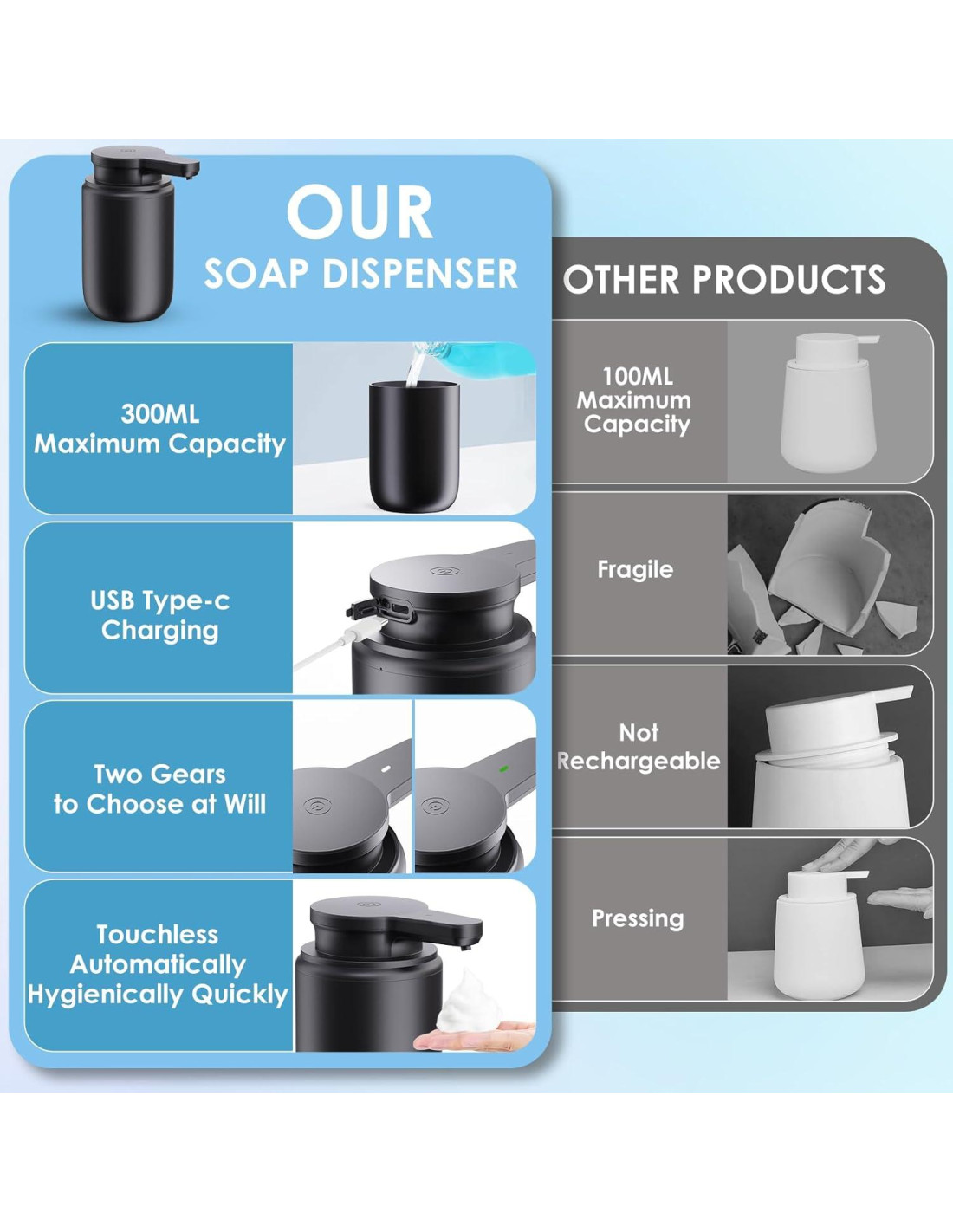 - Dispensador de Jabón Espumoso Automático: Con un sensor infrarrojo rápido, este dispensador se activa y libera jabón en 0.25 segundos. Adecuado para decoraciones de baño/cocina simples y elegantes. Y es más fuerte y duradero.