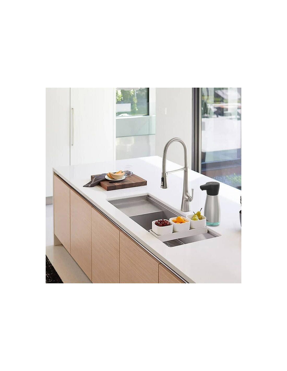 - Dispensado preciso - Rango de dispensado ajustable en 5 niveles adecuado para todos los jabones líquidos. Usando una pequeña cantidad de jabón para el lavado de manos o aumentando el dispensado para tareas como lavar platos. SIN FUGAS NI OBSTRUCCIONES.