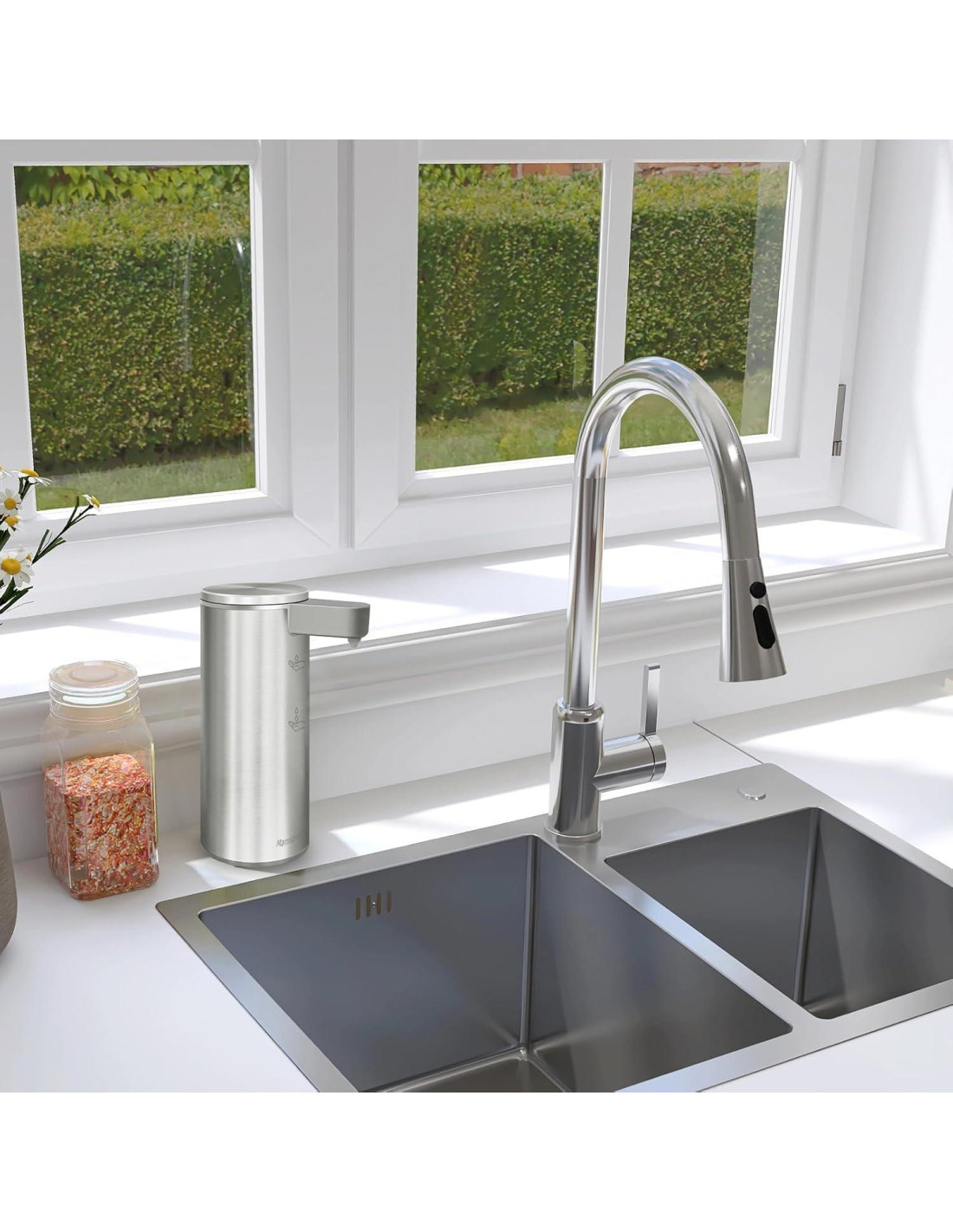 - Impermeable IPX5 - El dispensador de jabón automático está hecho de acero inoxidable+ABS con tecnología impermeable y tiene protección contra goteos, y el acabado cepillado resiste huellas dactilares, agua y manchas de aceite