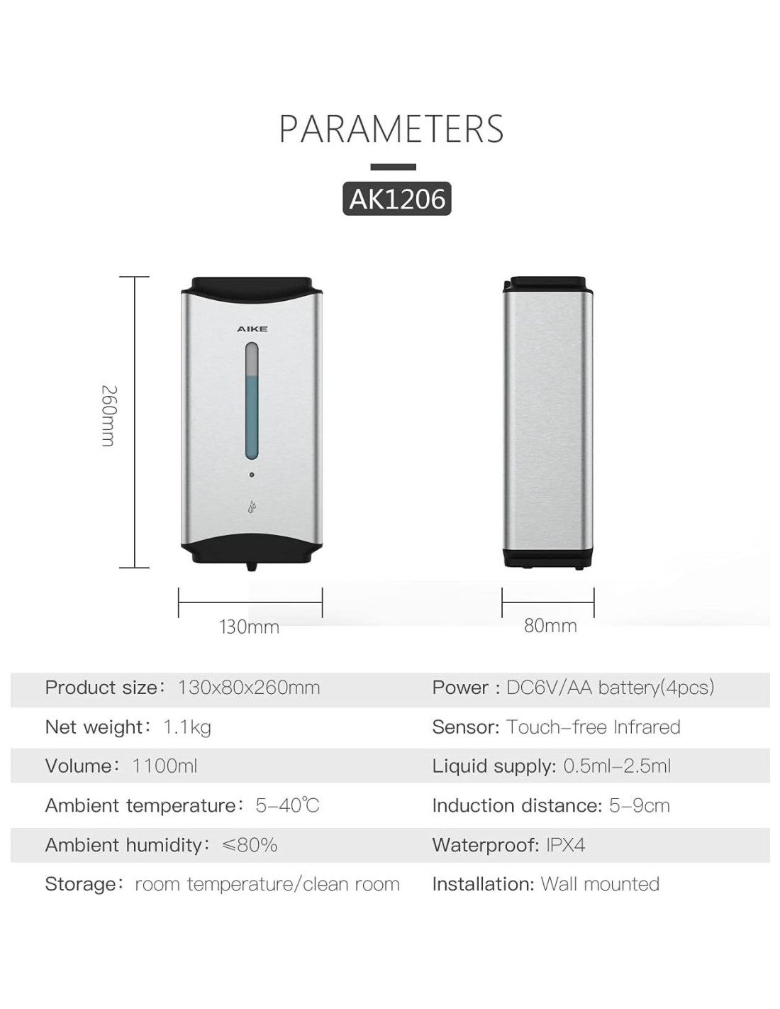 - Suministro de Jabón Ajustable - Cinco niveles de suministro de jabón líquido de 0.5ml a 2.5ml (diferentes jabones pueden tener una ligera desviación). Simplemente configúralo con el botón de ajuste