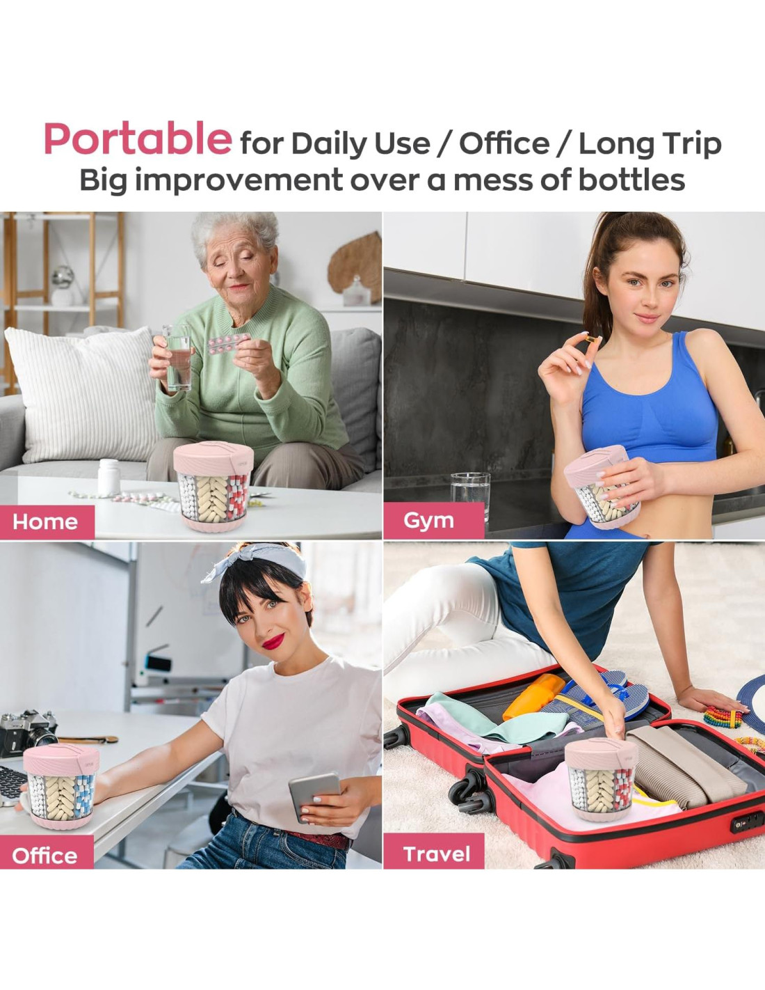 - DISEÑO ANTI-MEZCLA MANTIENE LAS PASTILLAS SEPARADAS: Cada compartimento en este organizador de pastillas está sellado herméticamente para evitar que las pastillas se mezclen durante su uso. No más verter un desorden de suplementos mezclados. Compacto pero espacioso, este dispensador de pastillas reemplaza múltiples contenedores con una botella ordenada y lista para viajar. Ideal para uso diario, especialmente para personas mayores o profesionales ocupados.