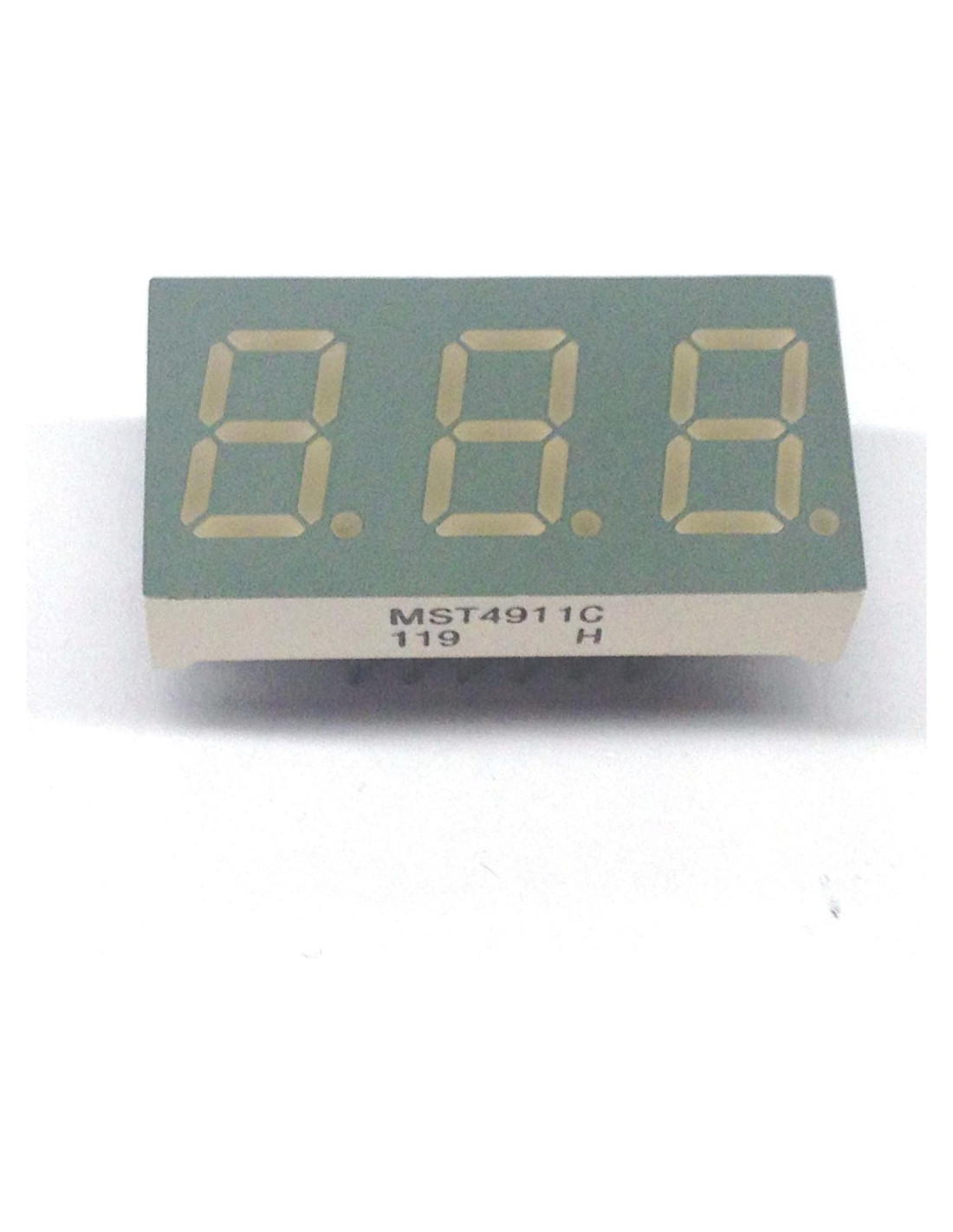 MST4911C Pantalla de Siete Segmentos de Tres Caracteres Roja, 1.02 cm Alto, Ánodo Común, Decimal a la Derecha