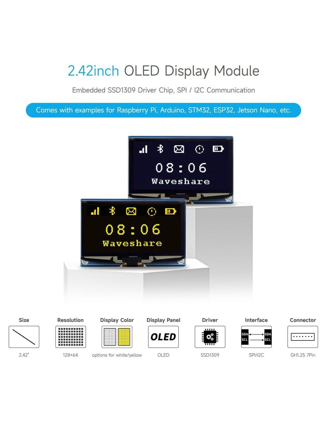 - Versión Blanca - Chip Controlador SSD1309 Integrado, Comunicación SPI / I2C
