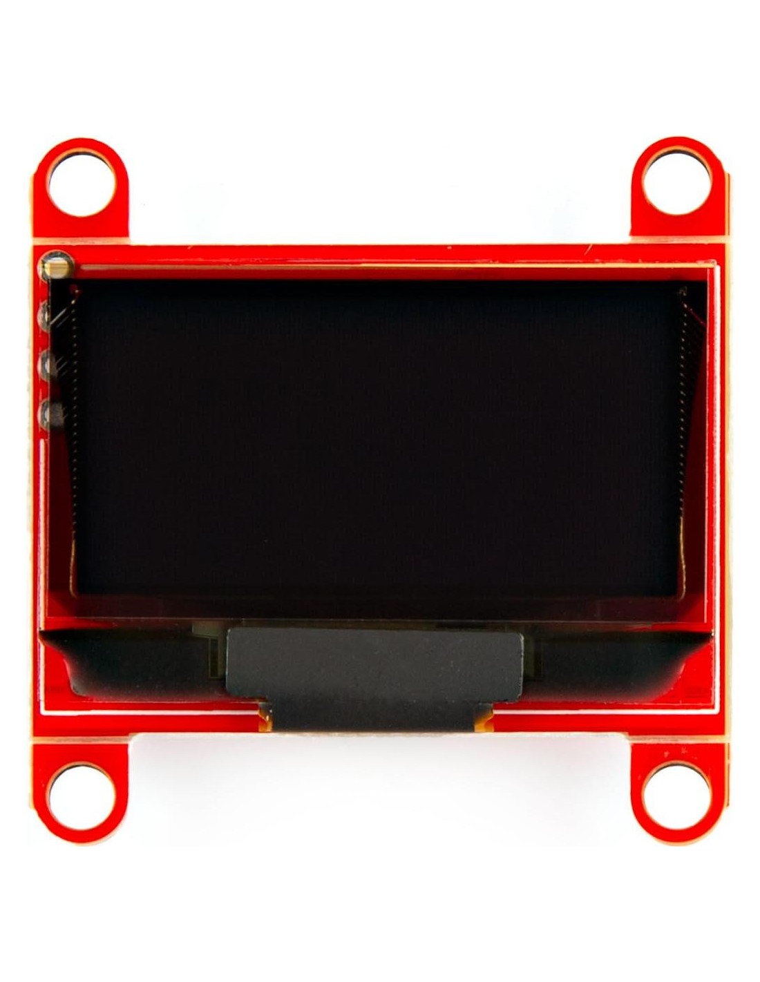 - Características: Número de píxeles: 128 x 64, Tamaño del panel: 34.5 x 23.0 x 1.4 (mm) Área activa: 29.42 x 14.7 (mm) Dirección I2C: 0x3D (predeterminada), 0x3C (seleccionable) 2x Conectores Qwiic horizontales, Voltaje de suministro: 3.0-3.3V.
