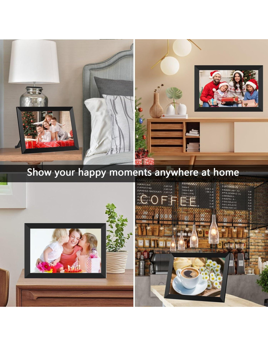 - GRAN ALMACENAMIENTO Y MULTIFUNCIÓN Almacenamiento interno grande de 32GB y tarjeta Micro SD (no incluida) permite una gran capacidad de almacenamiento, lo que permite que el marco inteligente registre más de tus mejores momentos. Configuraciones multifuncionales para satisfacer todas tus necesidades, incluyendo rotación automática, modo de presentación, brillo, modo de sueño, etc.