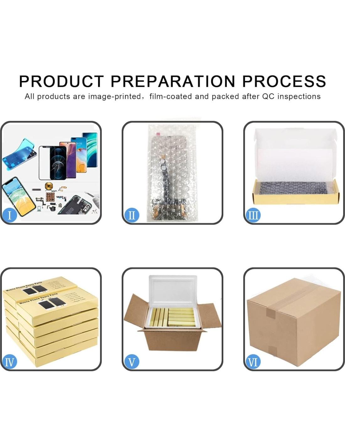 Notas antes de la instalación 1. Consejos 1: Prueba antes de la instalación Al probar, no retire ninguna película protectora o etiquetas. Preste atención al problema de la electricidad estática. Antes de intentar cualquier reparación, asegúrese de conectarse a tierra con una correa de descarga electrostática ESD. Esto evitará que la electricidad estática dañe los componentes electrónicos dentro del teléfono. Asegúrese de usar protección ocular y tenga cuidado de no cortarse el dedo con los fragmentos de vidrio. 2. Consejos 2: Simulación de prueba El reemplazo de pantalla es un producto muy frágil. Sugerimos probar antes de la instalación. Por favor, simule la prueba, lo que significa desarmar el teléfono móvil, conectar la placa base LCD o la pantalla con el cable de audio y el nuevo reemplazo, encender, prueba finalizada. Si la prueba es correcta, por favor instálelo. Si no puede mostrar, contáctenos en el primer momento. Y por favor, no fuerce la instalación en el teléfono móvil. 3. Consejos 3: No doble en exceso el cable Asegúrese de que el cable LCD no se doble en exceso. Un doblado de más de 90 grados causará una pantalla negra. Acerca del producto 1. Pantalla LCD de repuesto, ensamblaje de pantalla táctil digitalizador Material OLED para vivo X60/X60T/X70/X70T. 2. Reemplace su artículo roto o inutilizable por uno nuevo. 3. Haga que su dispositivo se vea más refrescante que nunca. 4. Se ajusta y funciona completamente. 5. Cada artículo ha sido revisado y está en buenas condiciones antes del envío. 6. Se recomienda instalación profesional.