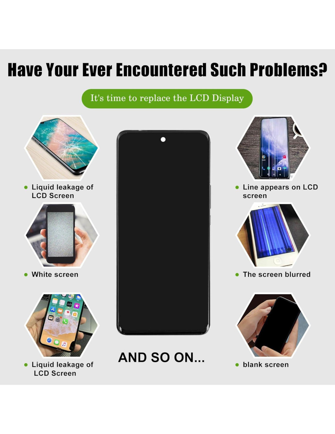 - [Reemplazo] : Es el mejor reemplazo para su viejo, roto, rayado, agrietado, dañado cristal frontal de pantalla LCD. Es el reemplazo perfecto para su viejo, roto, rayado, agrietado, dañado pantalla LCD.