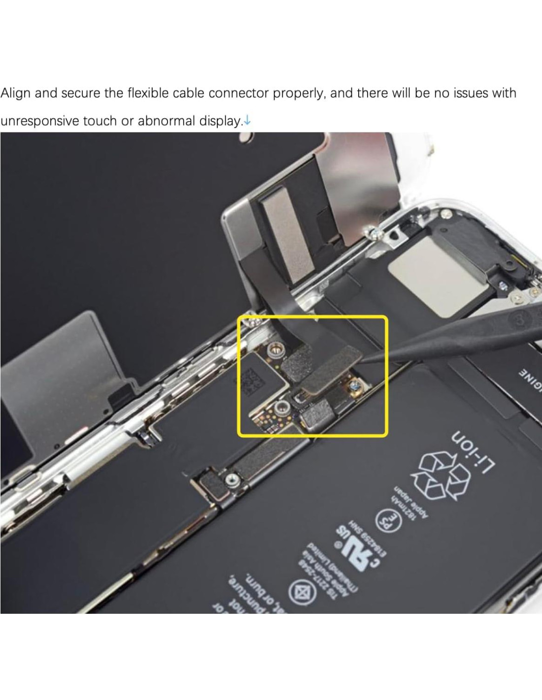 - El kit incluye: 1 ensamblaje de pantalla LCD, adhesivo para marco, pinzas curvas, 2 herramientas de palanca de doble cabeza, ventosa grande, expulsor de SIM sin rebabas, 2 hojas de apertura flexibles, mango de succión de aluminio y puntas de precisión (0.8mm Pentalobe, 1.5mm Phillips, 0.6mm Tri - point).