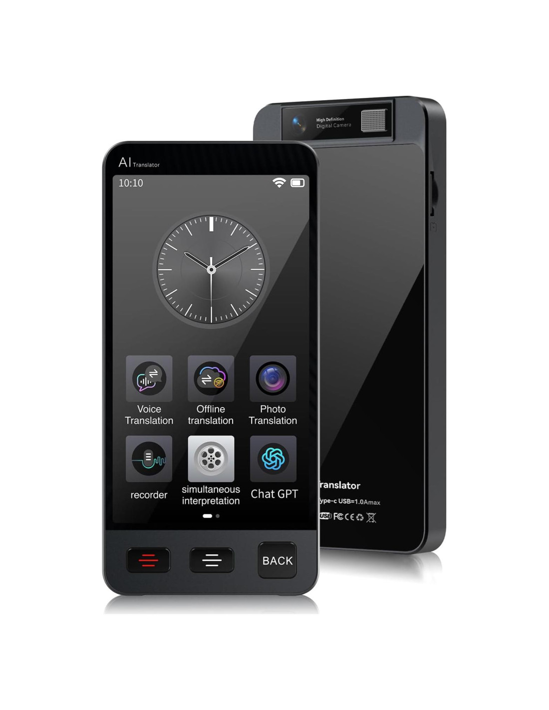 - Grabación y ChatGPT: El dispositivo traductor de idiomas soporta grabación inteligente, perfecto para conferencias y reuniones grabadas. Este traductor en tiempo real también está equipado con la aplicación ChatGPT más popular, que hará que tu viaje o viaje de negocios sea más inteligente y conveniente.