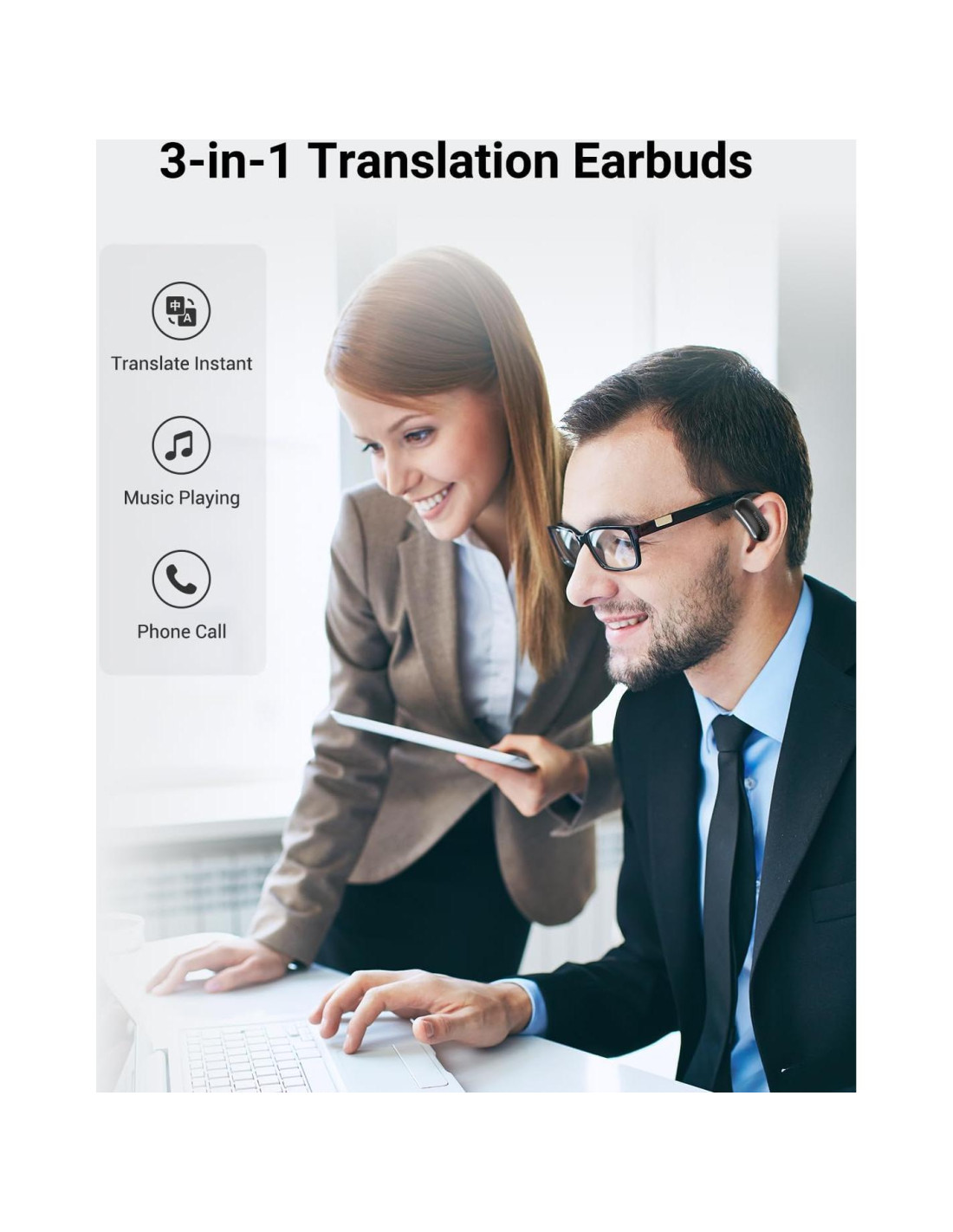 - Diseño Cómodo y Estiloso: Los auriculares de traducción se ajustan con la innovación ergonómica OWS, ideales para un uso prolongado sin incomodidad, ligeros y fáciles de llevar