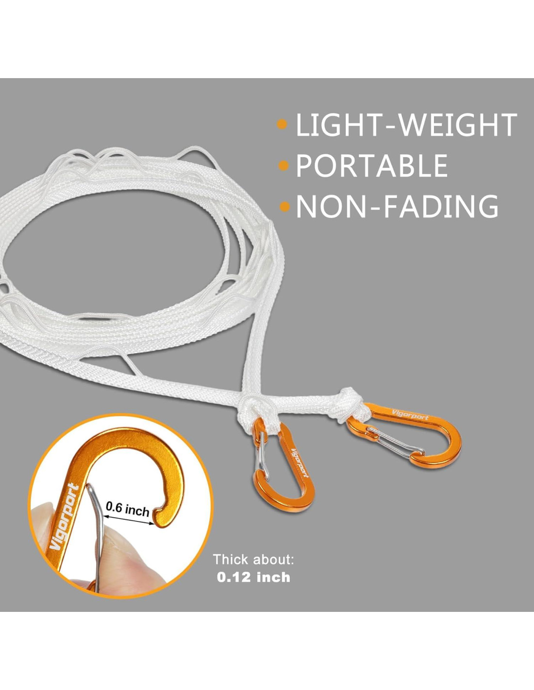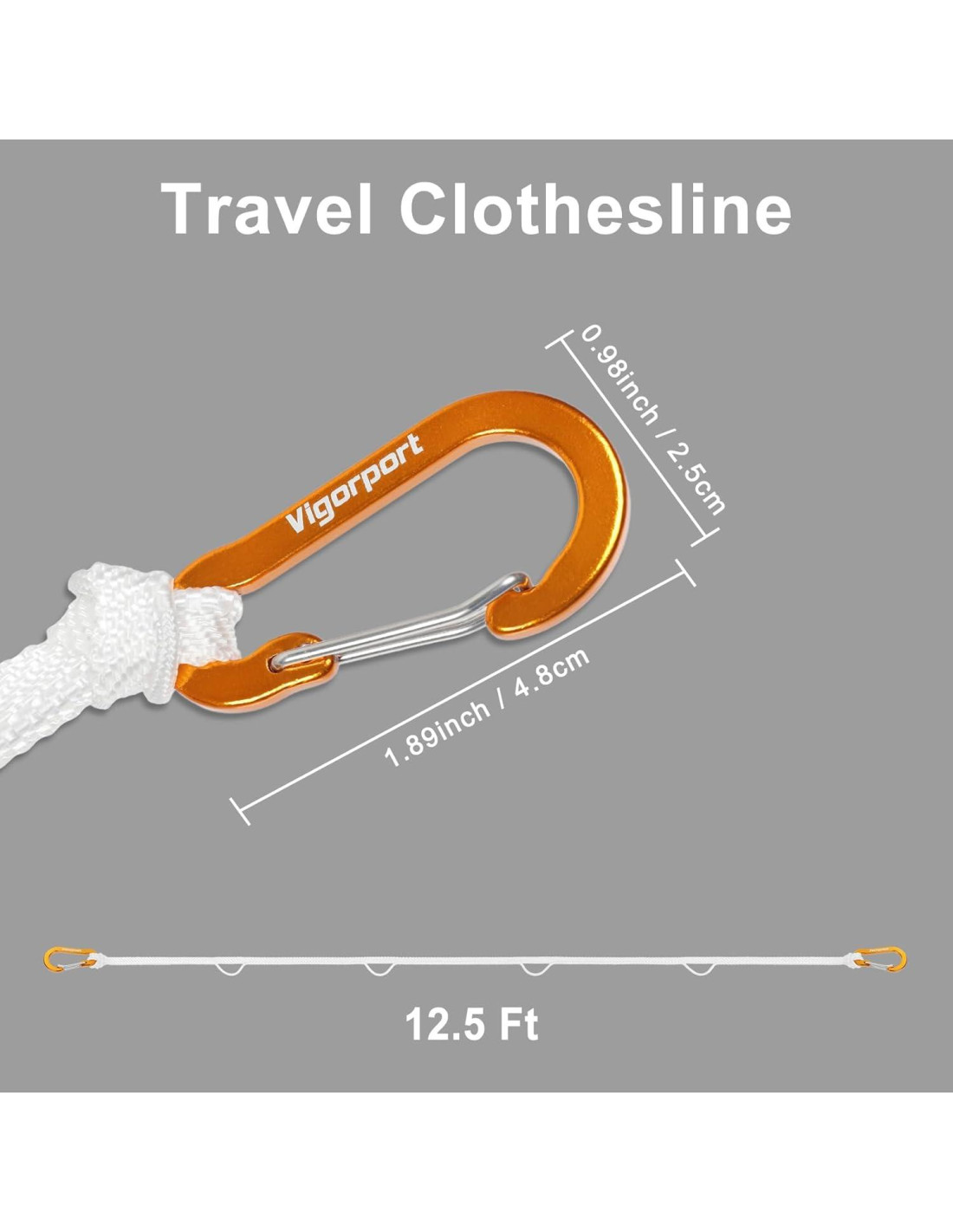 - Construida para Durar: Fabricada con nylon de alta calidad y con ganchos de broche resistentes a la corrosión en cada extremo, la Cuerda de Ropa para Viajes Vigorport de 3.81 metros ofrece una excepcional resistencia y durabilidad para todas tus necesidades de secado de ropa, en cualquier lugar.