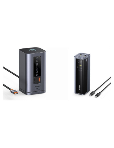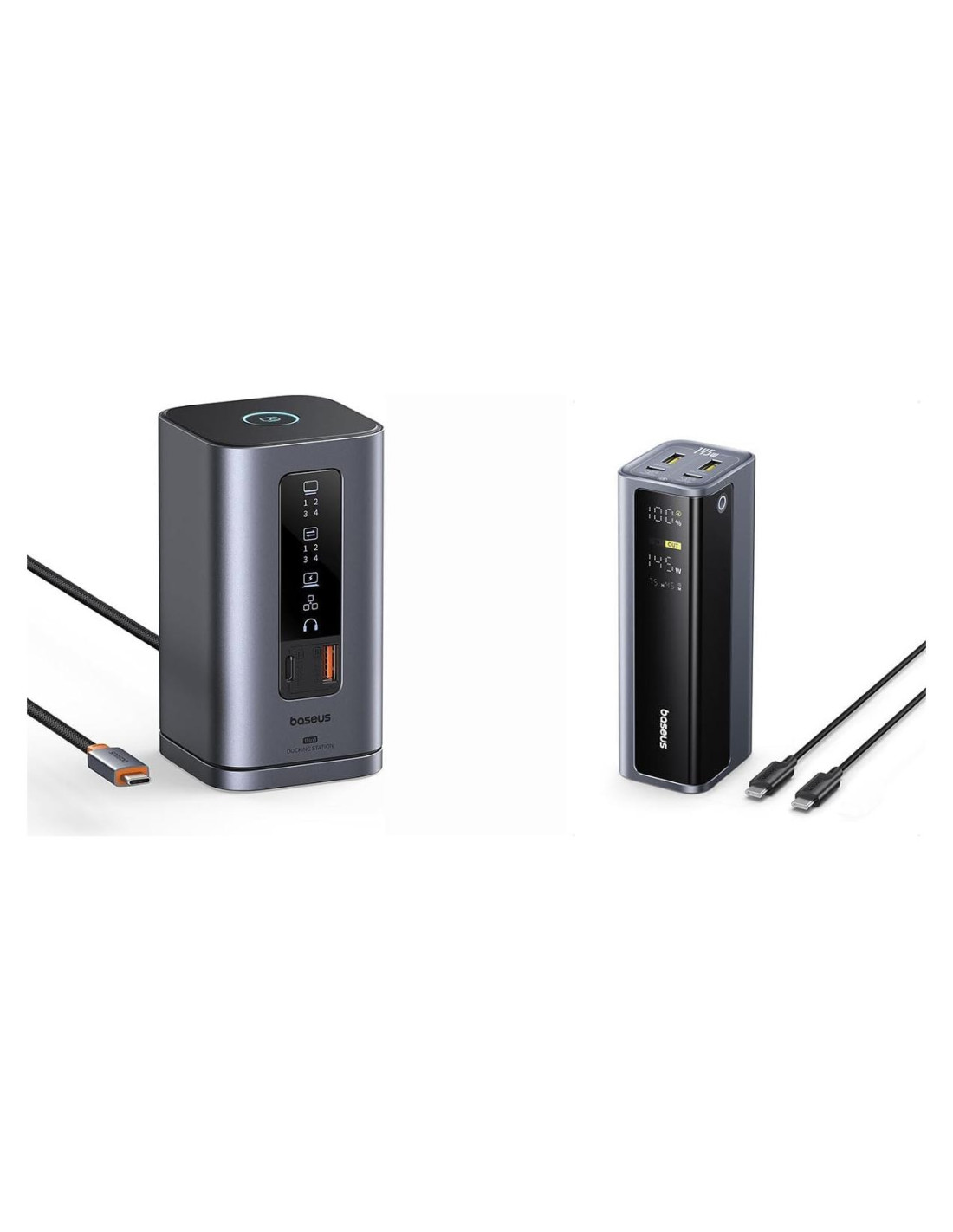 Baseus Estación de Acoplamiento, Spacemate(Win) 11 en 1, Triple Pantalla, 4K HDMI y DP, 10Gbps Puertos USB A/C, Ethernet Gigabit, 100W PD, Audio, Estación de Acoplamiento para Laptop para Windows/Dell/HP/Lenovo/Asus/Acer/Mac Baseus Batería Portátil de 145W, 20,800mAh Cargador Portátil para Laptop de 4 Puertos (77Wh), Paquete de Batería de Carga Rápida PD con Pantalla Digital para MacBook, iPhone 16/15/14/13/12 Series, Samsung, Dell, Steam Deck