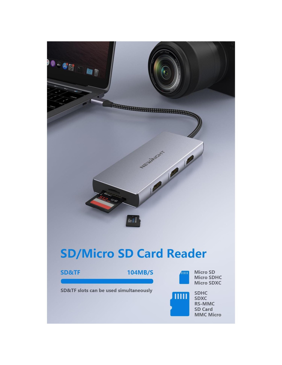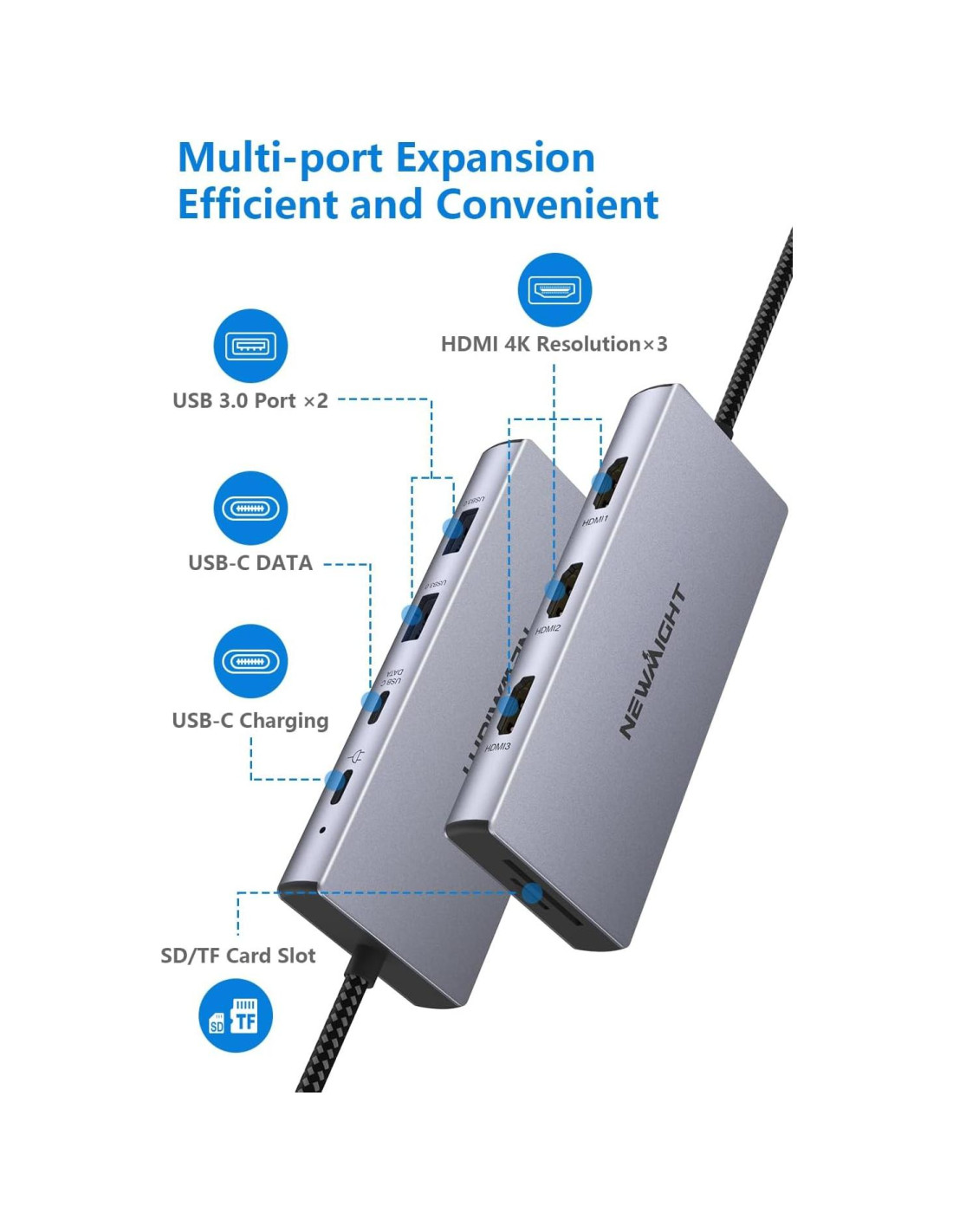 Estación de Acoplamiento Triple Pantalla 9 en 1 Newmight para Laptops Windows/macOS