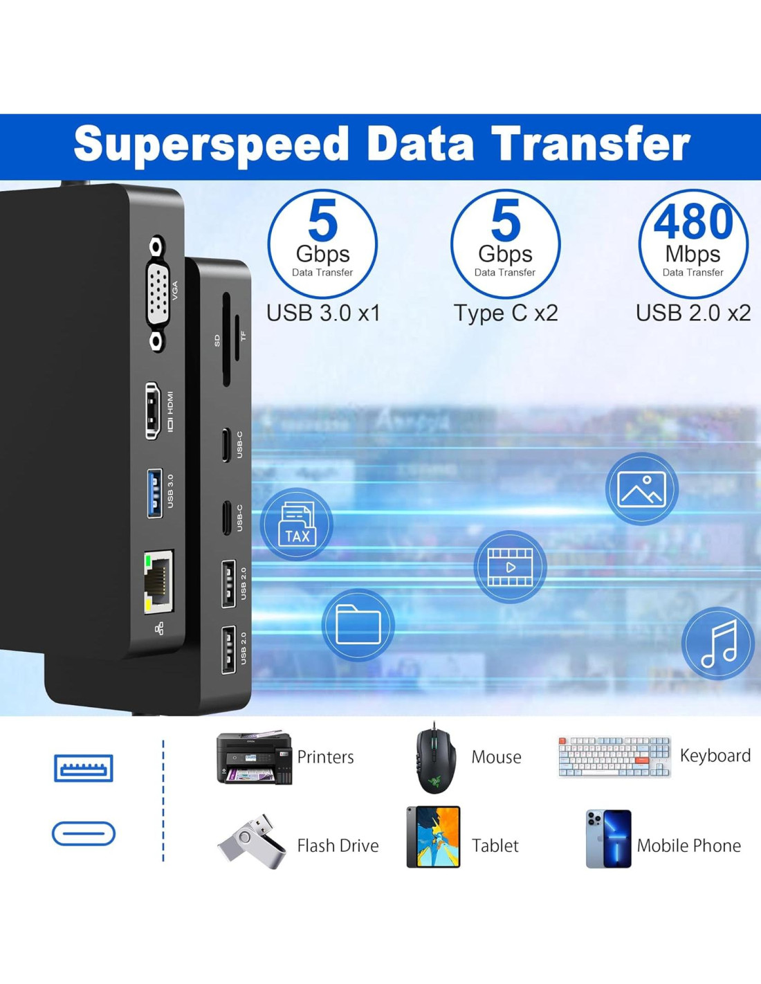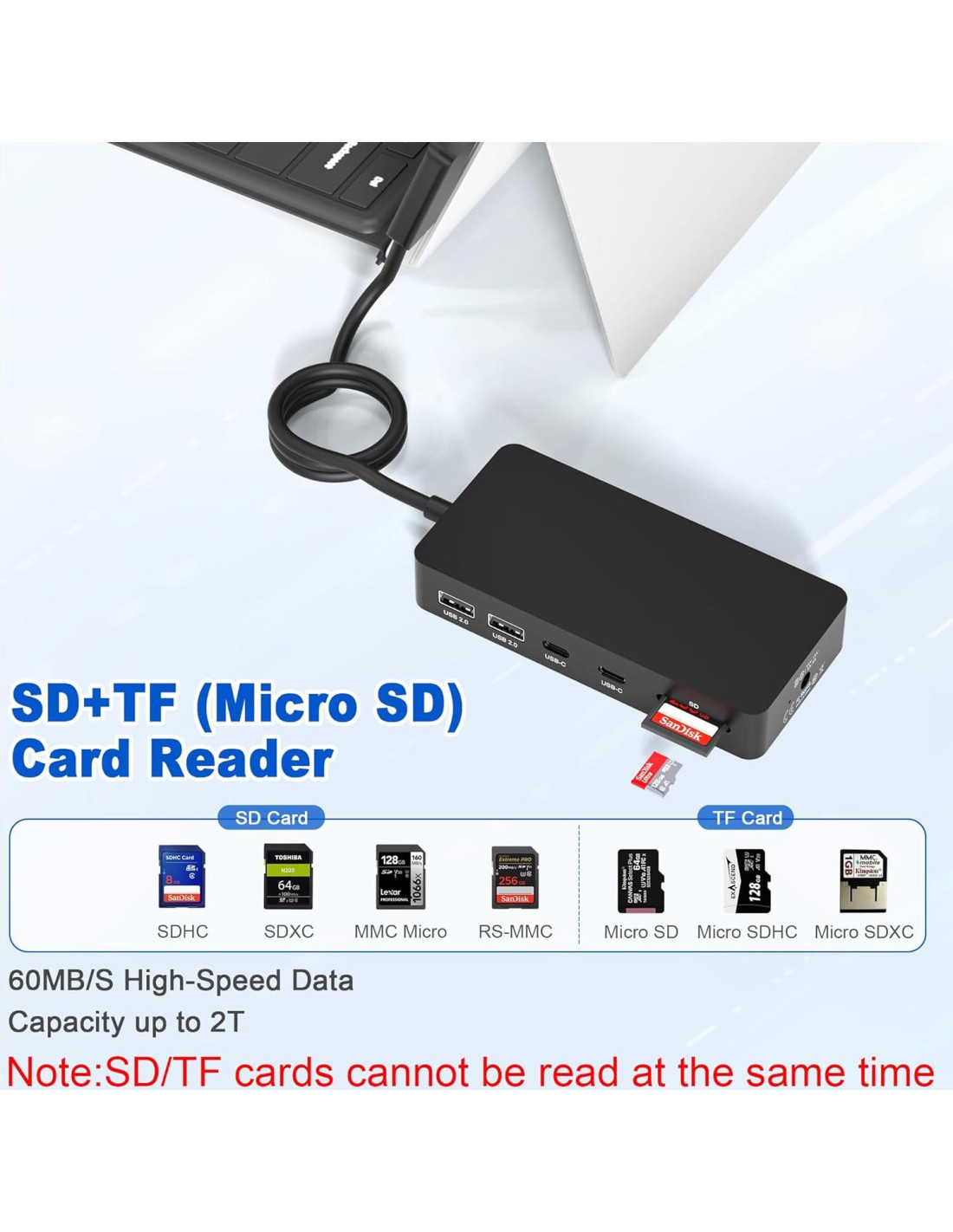 - Estación de Acoplamiento Multifuncional de 11 en 1: La estación de acoplamiento utiliza tecnología de conexión Surface, que tiene transmisión de video, audio y datos de alta velocidad para mantener tu escritorio ordenado. El dock Microsoft Surface Pro de triple pantalla de 11 en 1 está equipado con puertos HDMI 4K@60Hz, puerto VGA, puerto RJ45, 2 puertos de datos USB C, 3 puertos USB, ranura para tarjeta SD/TF Micro SD, puerto de alimentación DC. Dock Surface con conectividad simple plug and play.