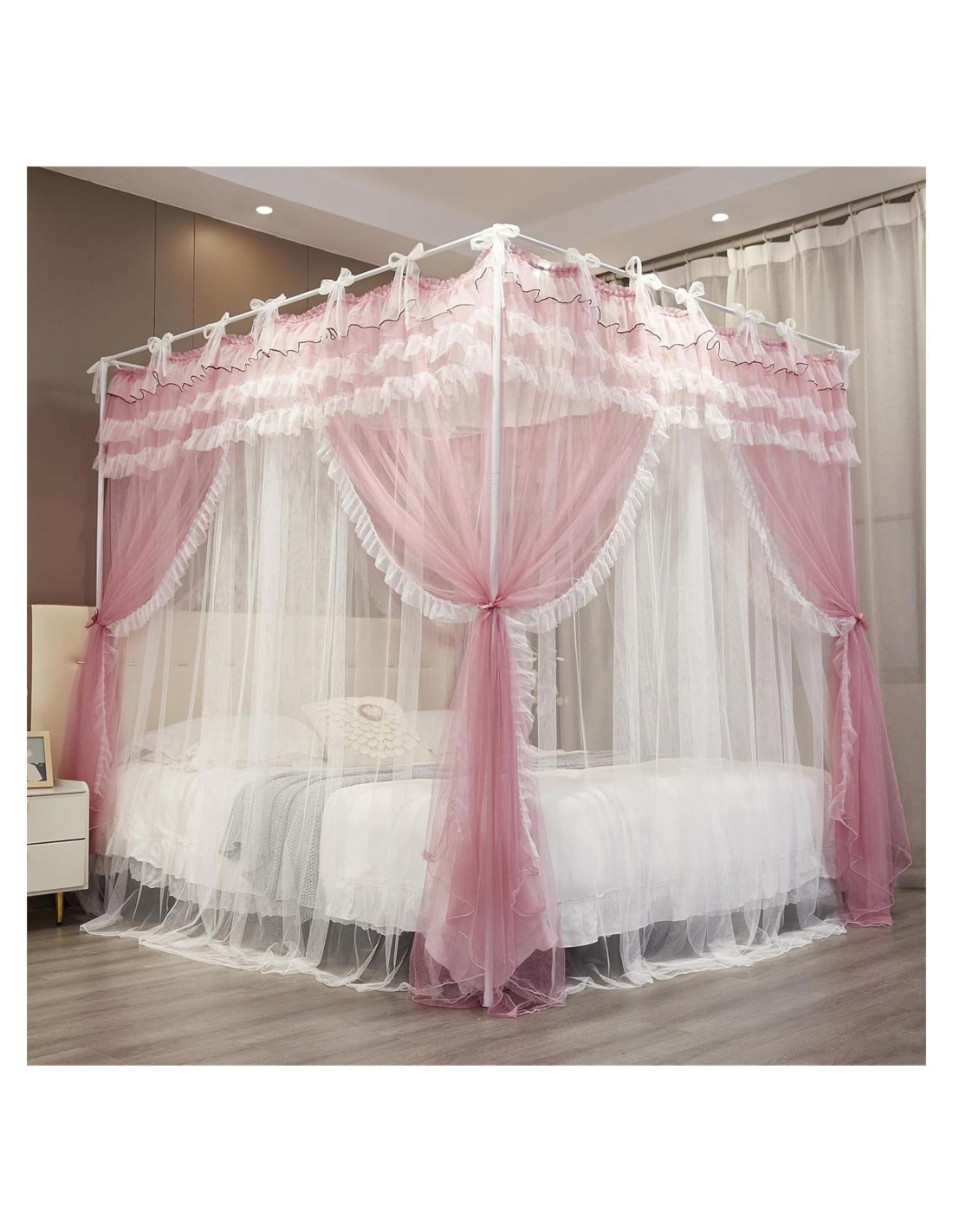 - El diseño de la correa con volantes en la parte superior hace que tu habitación sea romántica y elegante. El ingenioso diseño de cortina de cama doble con 4 aberturas hace que tu cama realice el sueño de cada dama de ser una princesa. Práctico y hermoso.