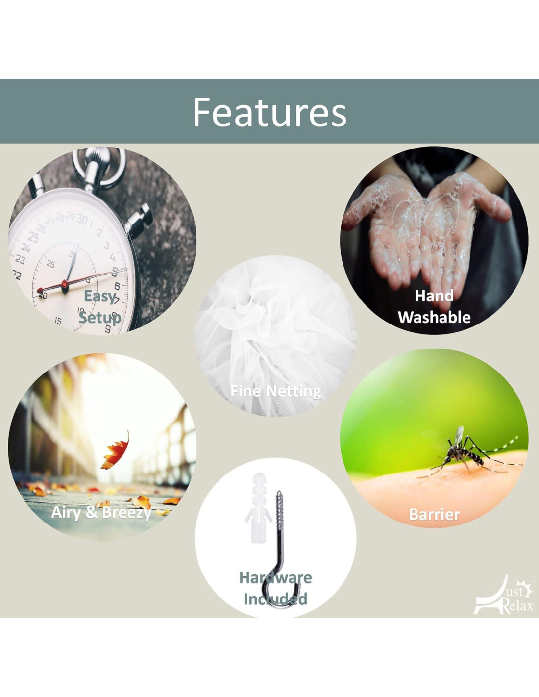 Fácil de lavar a mano usando detergente y acondicionador. La instalación solo toma de 5 a 7 minutos de tu tiempo, y TODOS LOS ACCESORIOS están INCLUIDOS. No temas, Solo Relájate está aquí, proporcionándote muchas noches de descanso pacífico. Configurar este dosel será pan comido, y te estarás preguntando por qué no lo hiciste antes. Perfecto para la Decoración de tu Dormitorio. Perfecto para Exteriores. Perfecto para tu Porche. Di Hola a Noches Pacíficas. Mejora tu dormitorio. Disfruta del clima con Aire. Perfecto para un día en el parque. Haz que tu asiento sea cómodo. Vista sin tener que preocuparte. Drapeado Elegante y Único. Crea un aspecto dramático y más romántico en tu dormitorio. Colgado en cualquier árbol. Donde sea que necesites un poco de paz mental extra. ¡Especialmente en verano! ¡Solo Relájate!