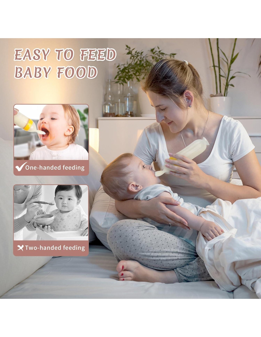 - [Material Seguro-Cuchara para Comida de Bebé] : El dispensador de comida para bebés está hecho de PP y silicona de calidad, seguro, libre de BPA, PVC y ftalatos. Adecuado para alimentos triturados y semi-sólidos. Es la mejor opción para que los bebés hagan la transición de la leche materna o fórmula a la alimentación sólida.