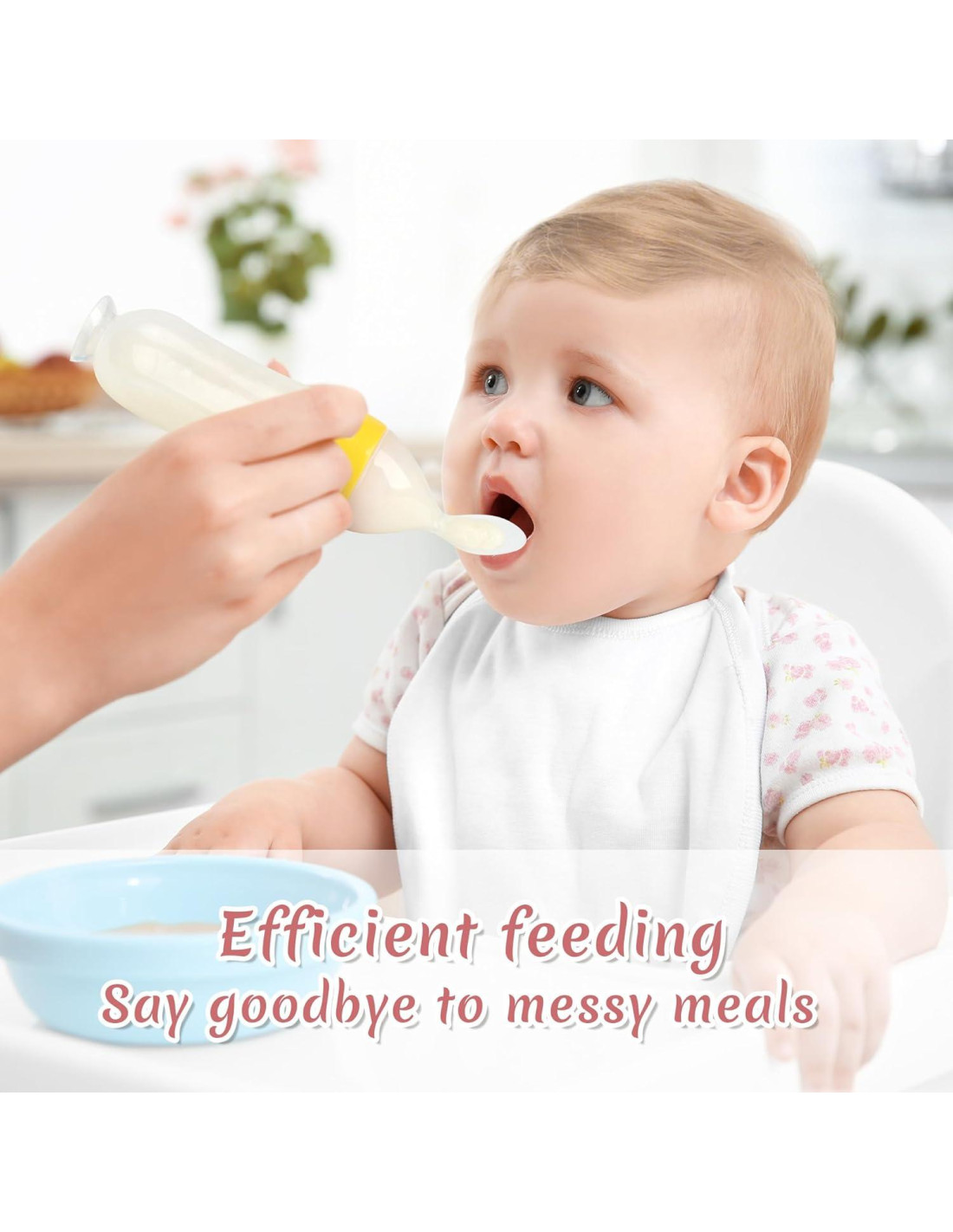 - [Versátil y Conveniente-Cuchara para Comida de Bebé] : Se puede usar para alimentar puré de arroz, sopa, jugo, etc. Es más fácil para los padres alimentar al bebé con una mano y decir adiós a las comidas desordenadas. Su uso en casa o al aire libre es muy conveniente, la cuchara para comida de bebé es útil cuando el bebé está en dentición y se niega a comer.
