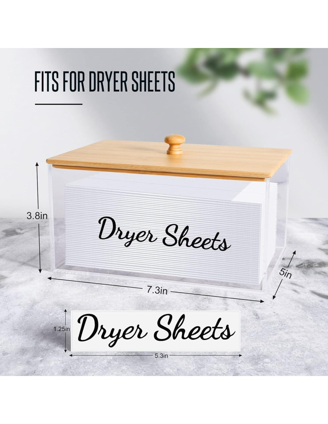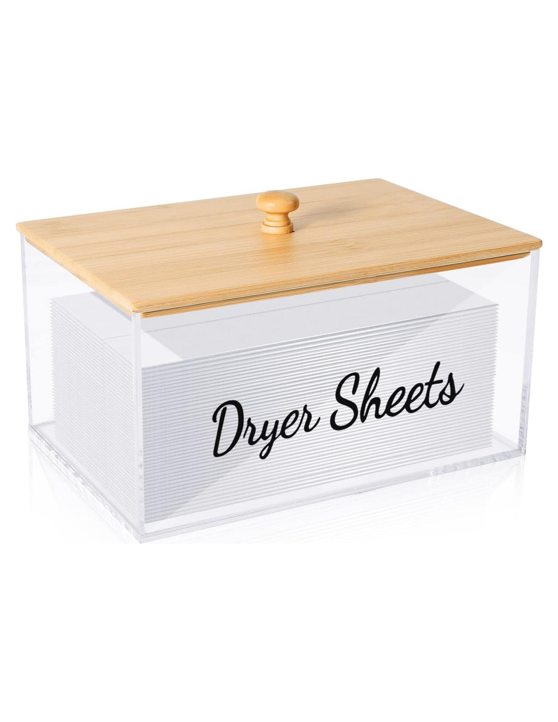 - Tamaño Perfecto para Hojas de SecadoraNuestro dispensador de hojas de secado acrílico mide 18.54 cm L x 12.7 cm W x 9.65 cm H para satisfacer las necesidades de tu hogar. El contenedor puede reemplazar el cartón tradicional, encajar en cualquier mostrador de lavandería, no ocupa mucho espacio. Los productos incluyen: un contenedor de acrílico, una tapa de bambú y una etiqueta de "hoja de secadora".