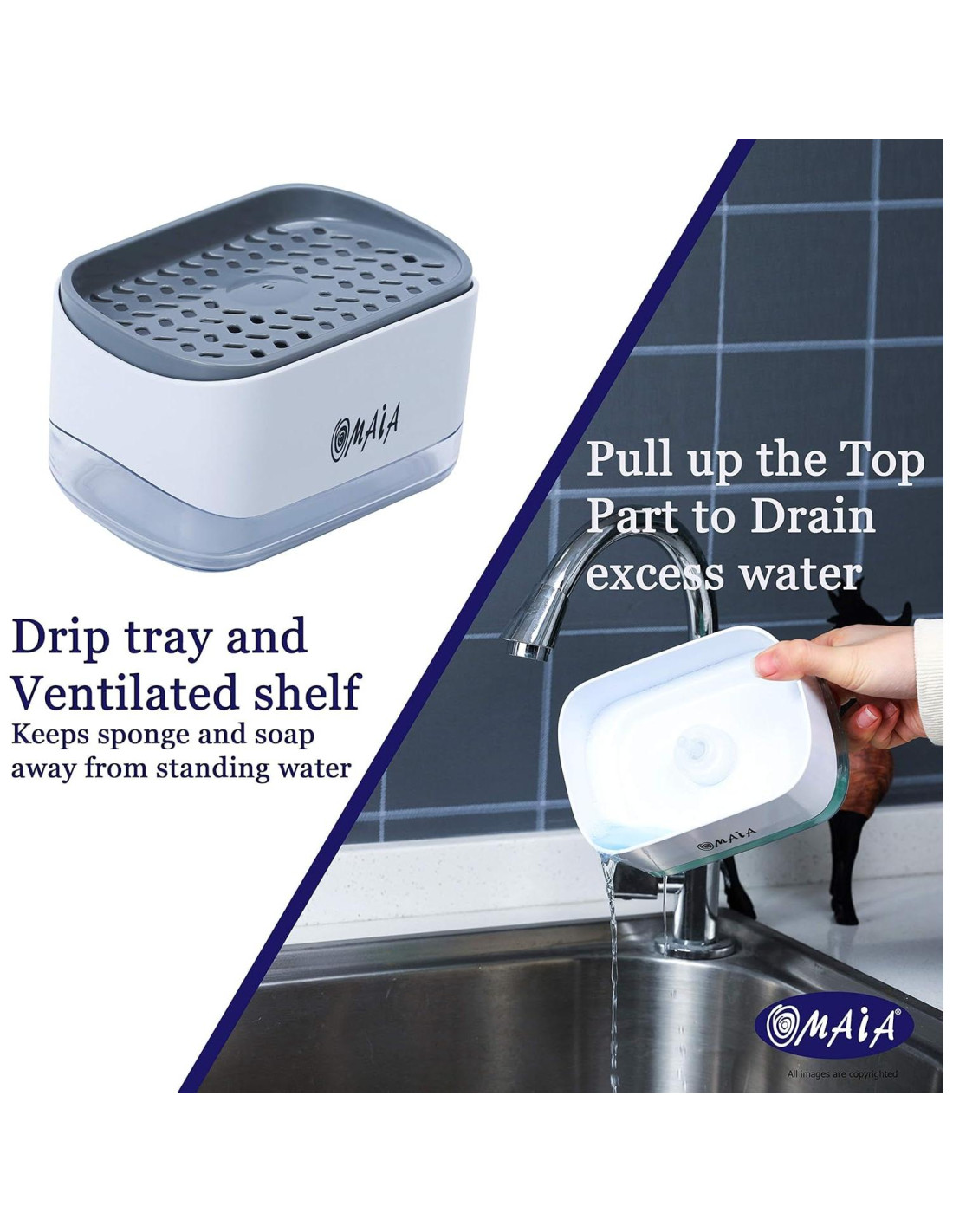 - Diseño Sin Fugas - El diseño compacto de nuestro dispensador de jabón para platos con soporte para esponja asegura que no haya fugas, derrames o rastros. Quitar la capa superior te permite eliminar el exceso de agua fácilmente.