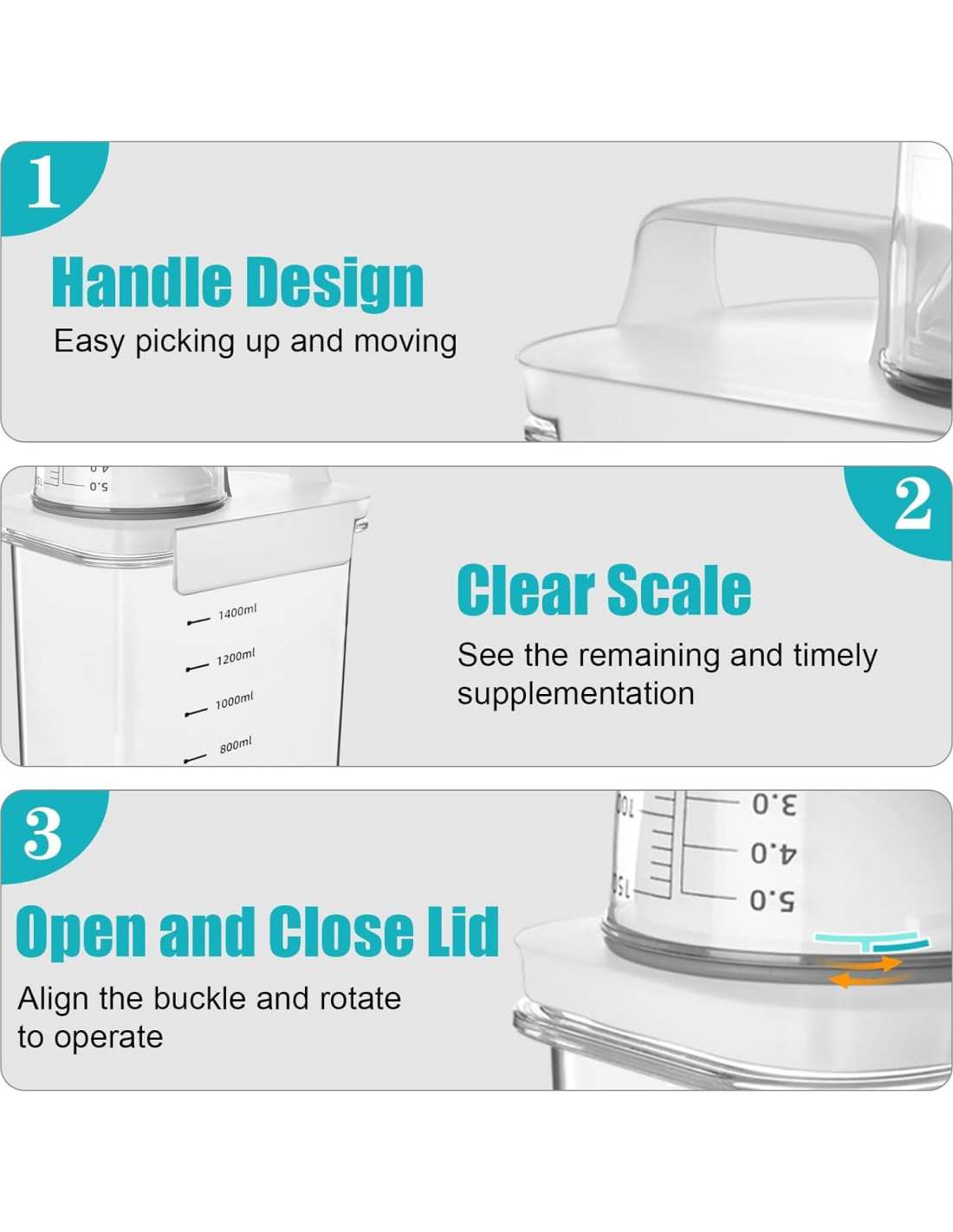 - Dispensador Preciso: El dispensador de polvo tiene una amplia boca de pico, fácil de verter sin derrames y el mango portátil es fácil de alcanzar, te permite verter fácilmente o sacar suministros de lavandería, con una taza medidora, ya sea perlas aromatizantes o detergente en polvo, puede dispensar con precisión la cantidad de jabón líquido cada vez fácilmente