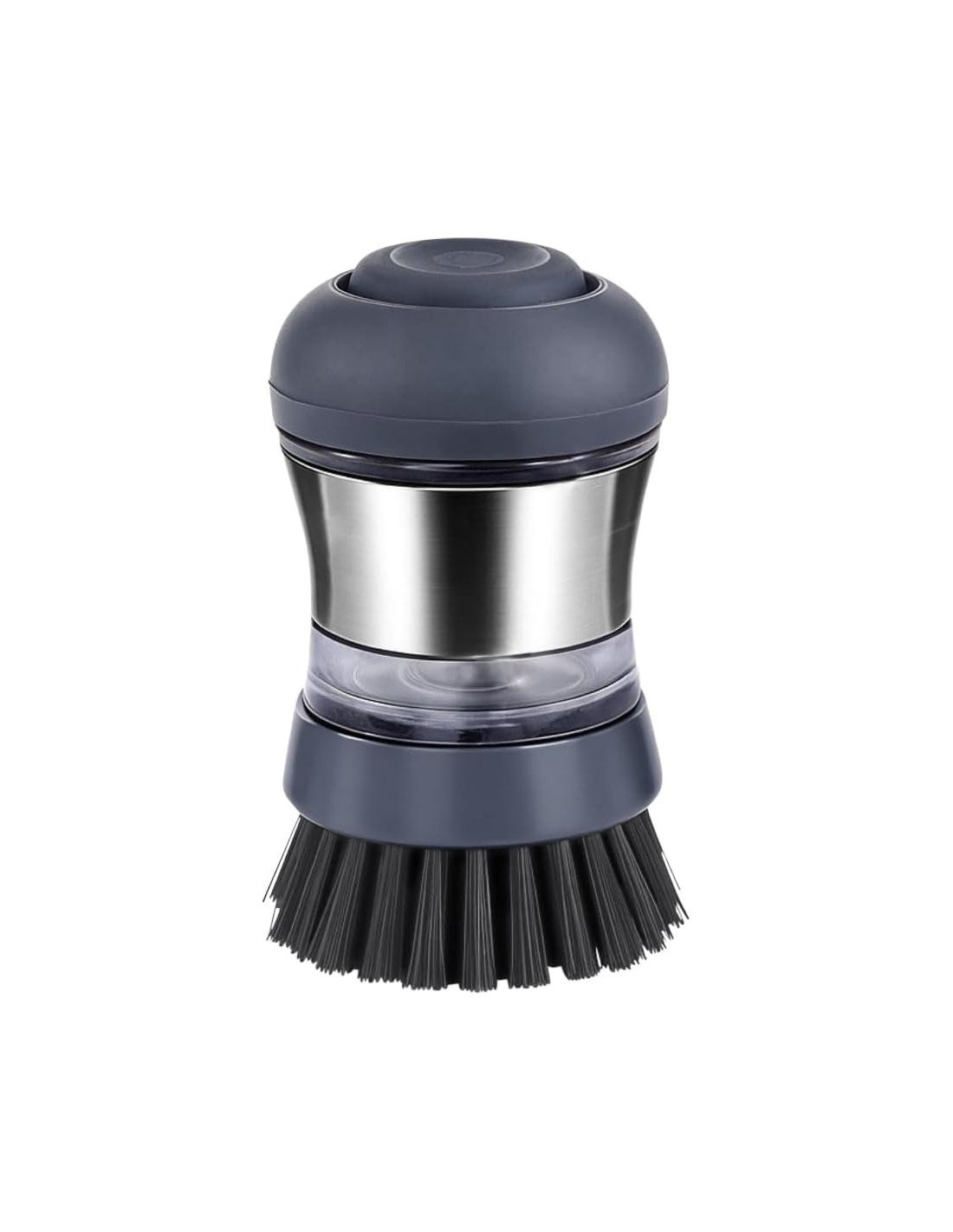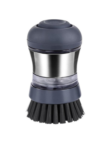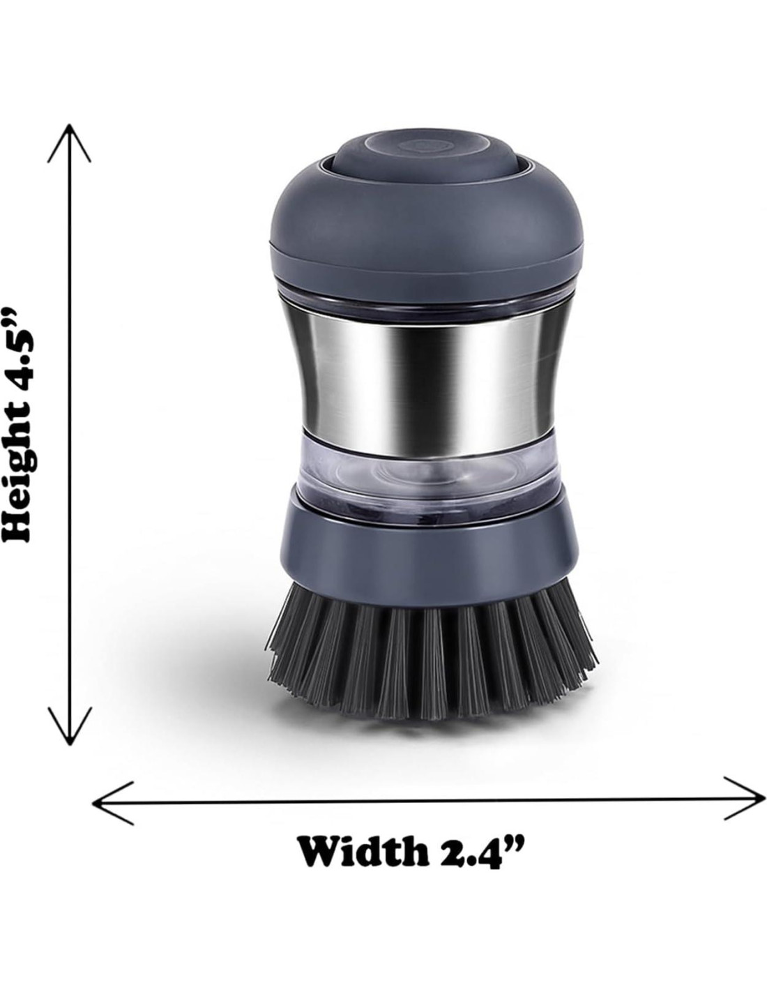 Cepillo dispensador de jabón de alta calidad para platos, ollas, sartenes y utensilios en general. Viene con cerdas anguladas que te permiten limpiar todas las áreas de difícil acceso con extrema facilidad. Este cepillo plateado y gris tiene justo los colores neutros que necesitas para complementar la decoración de tu cocina. Además, tiene una ventana clara para rastrear la cantidad de jabón para platos restante. Aparte del uso general en la cocina, este cepillo de limpieza se puede usar como cepillo para lavar autos, cepillo para bañeras o cepillo para limpiar fregaderos. Si buscas un cepillo para platos de alta calidad con dispensador de jabón, este cepillo dispensador es imprescindible. El cepillo altamente ergonómico está diseñado de manera intrincada para ofrecer resultados de limpieza superiores sin causar rayones. Así que, ya sea que desees usarlo para limpiar tus verduras (papas, zanahorias, etc.) o tus ollas de hierro fundido, tablas de cortar, estufas, sartenes antiadherentes, fregaderos de cocina, lo que sea, este cepillo apto para lavavajillas nunca te decepcionará.