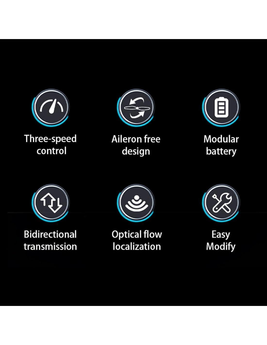 - >> Características Avanzadas: Características avanzadas como el mantenimiento de altitud y el posicionamiento de flujo óptico mantienen tus vuelos suaves y estables. El modo 6G, impulsado por un giroscopio de 6 ejes, ofrece una estabilidad inigualable, perfecto para pilotos novatos.