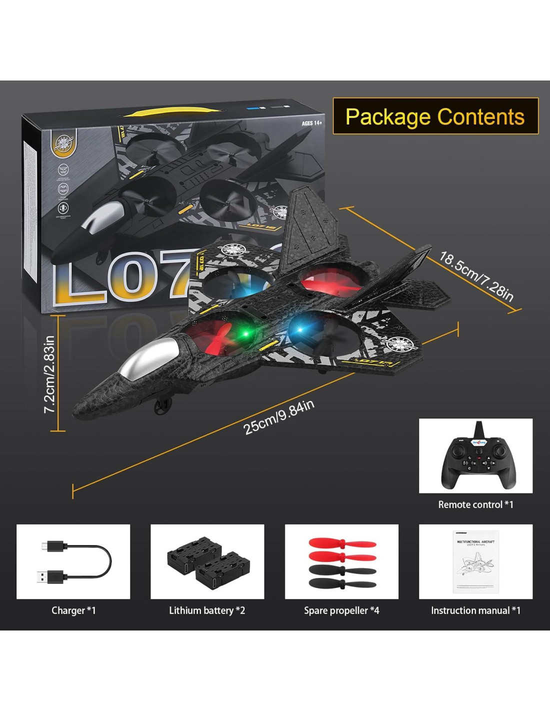 - Avión de Combate RC L0712: El avión RC no requiere ensamblaje, el avión de control remoto adopta un vuelo de giroscopio de 6 ejes para una experiencia de vuelo muy estable, despegue y aterrizaje con una tecla. Es fácil de volar para niños, principiantes y adultos.