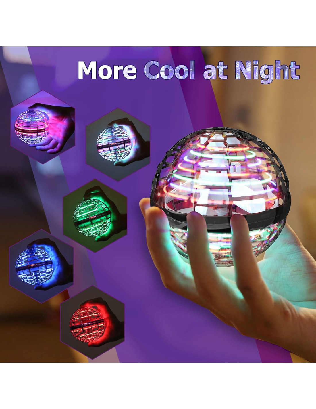 - [Juguete volador dinámico sin parar] Con tres deslumbrantes luces RGB de colores, tu orbe flotante parecerá una estrella fugaz de neón cuando lo lances por el cielo. Si realmente quieres llamar la atención, practica tus trucos por la noche cuando tu Flynova Pro puede iluminar la oscuridad.
