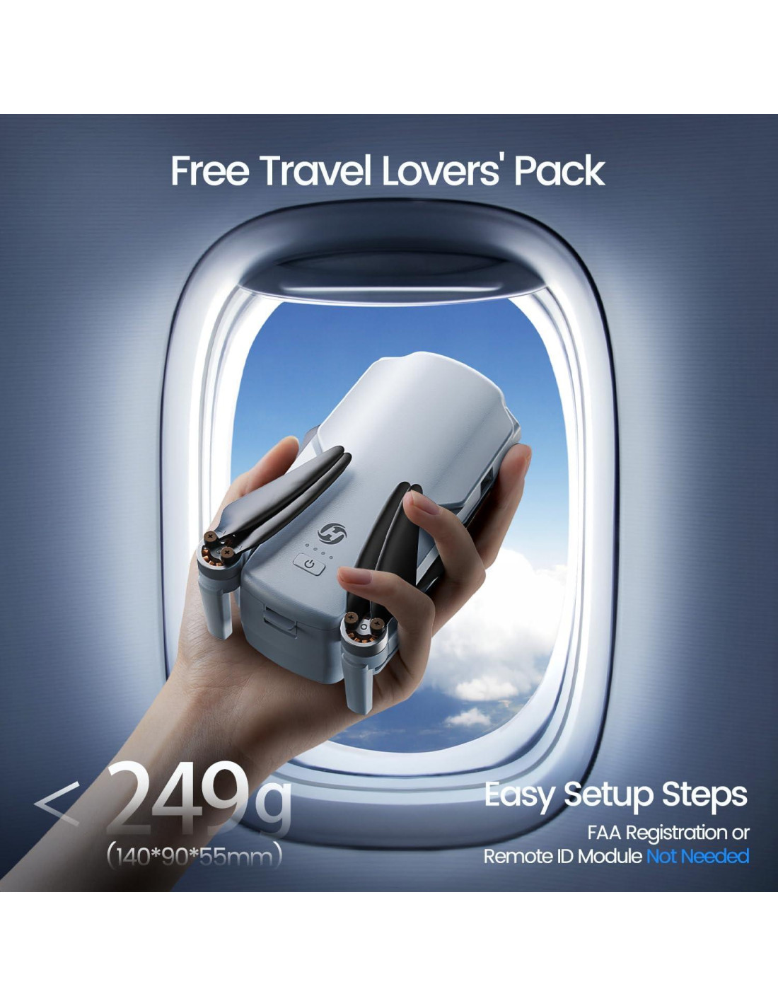 - Este drone ligero de 249g (8.7 onzas) permite a los adultos volar sin complicaciones, lo que lo convierte en la opción ideal para vuelos sin problemas y fácil portabilidad.