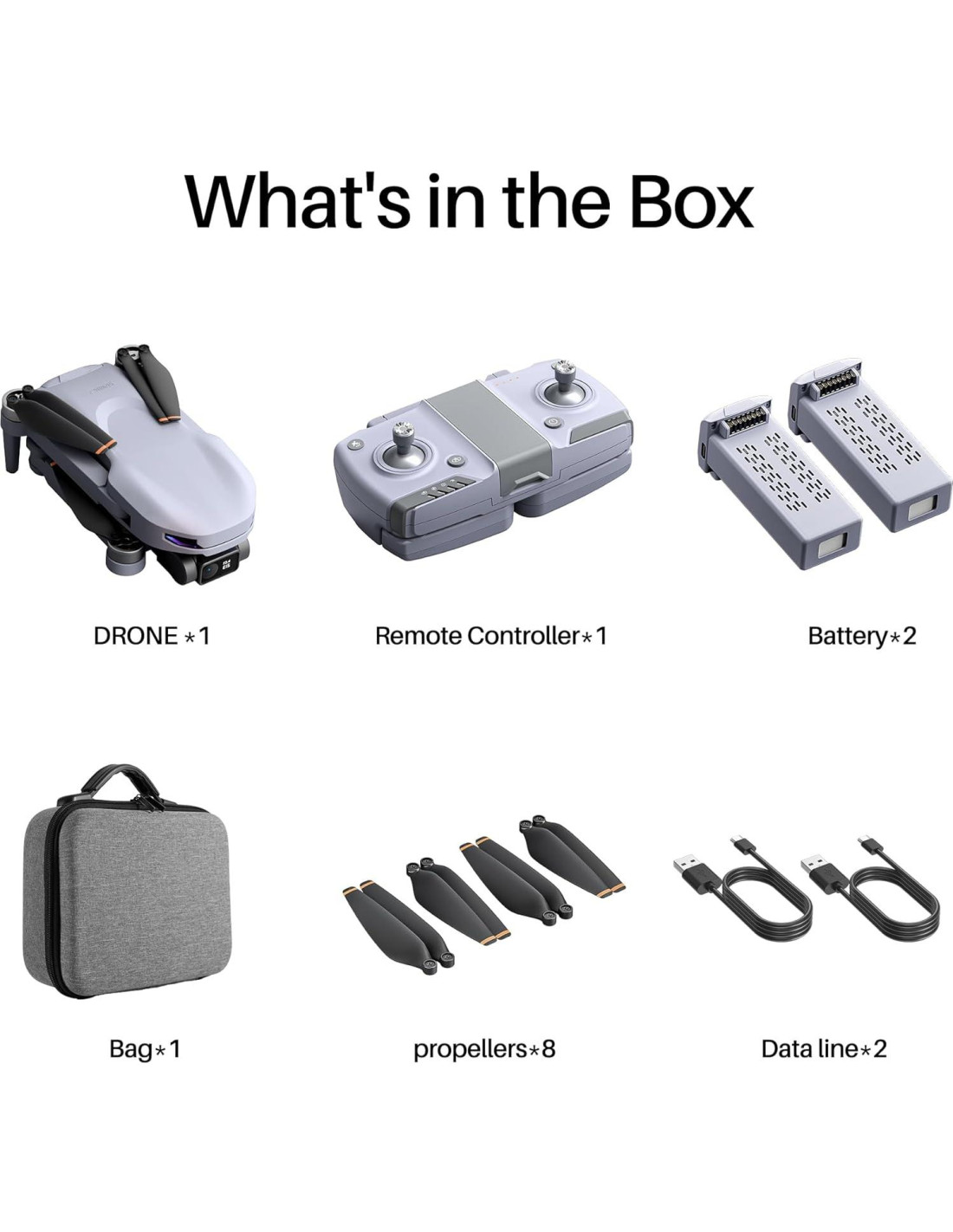 - Vuelo estable incluso en condiciones de viento: Disfruta de vuelos estables incluso en condiciones de viento. El sistema de control de vuelo utiliza sensores avanzados y algoritmos para mejorar la precisión del control, reducir la interferencia externa y minimizar errores del sistema. Con inteligencia avanzada para soportar un largo tiempo de vuelo y mayor alcance (cada batería ofrece hasta 22-23 minutos de tiempo de vuelo). ¡Disfrutarás volar libremente y grabar los momentos a tu alrededor sin interrupciones!
