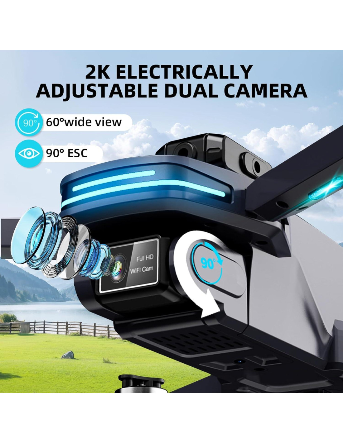 - Impresionante Sistema de Doble Cámara 4K - Captura imágenes aéreas de alta calidad con una cámara 4K orientada hacia adelante y un lente secundario de vista inferior. La cámara eléctricamente ajustable te permite cambiar ángulos en pleno vuelo, perfecta para paisajes amplios o tomas de acción en primer plano