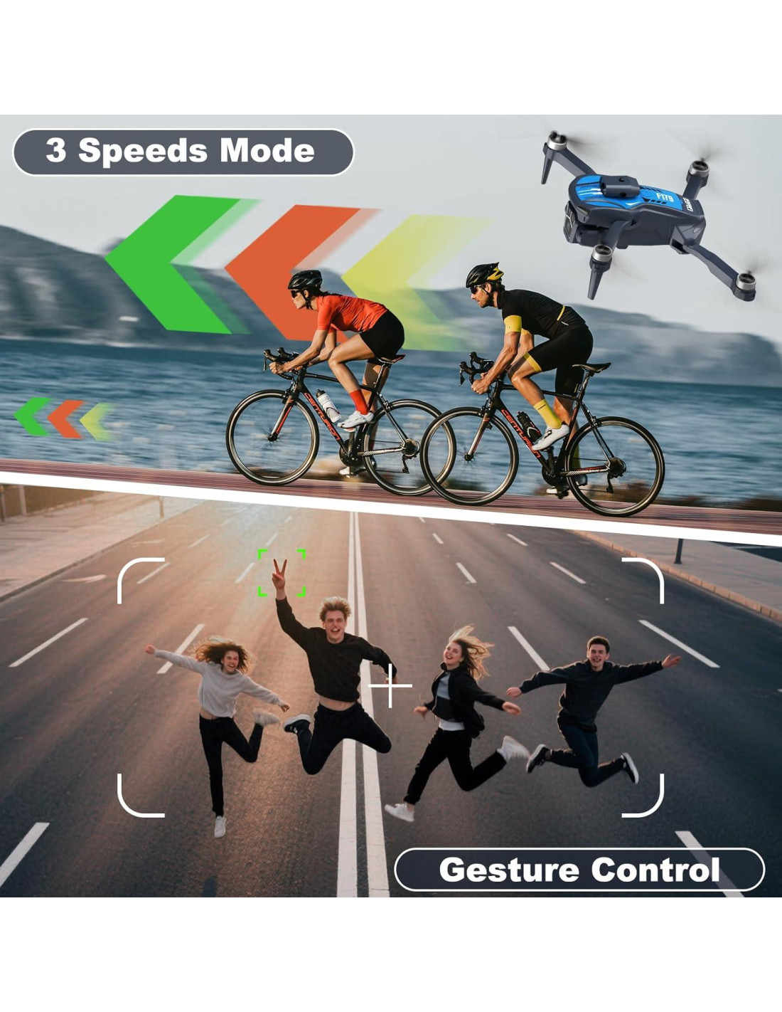 - Modos de vuelo inteligentes: Disfruta de una operación simplificada del dron con despegue/aterrizaje con un toque, vuelo en trayectoria y vuelo a puntos de referencia. ¡Haz que el dron realice una voltereta de 360/rollo 3D al instante! Controla el dron con gestos, detección de gravedad y 3 configuraciones de velocidad adecuadas para todos.