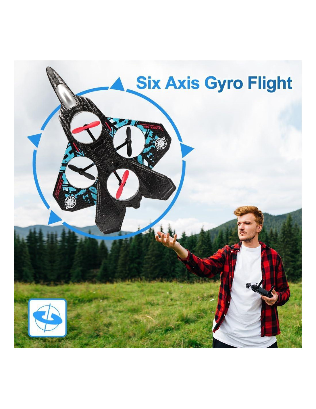 - Acrobacias de vuelo múltiples: Los drones en suspensión están diseñados para simular el vuelo real de los cazas, capaces de realizar varias acrobacias, incluyendo volteretas de 360 grados, giros en 3D, vuelo en suspensión automático, despegue en planeo, suspensión de helicóptero RC, despegue con un clic, aterrizaje con un clic y regreso con un clic. Ya sea en interiores o exteriores, jugar con drones RC con amigos o familiares es la elección perfecta.