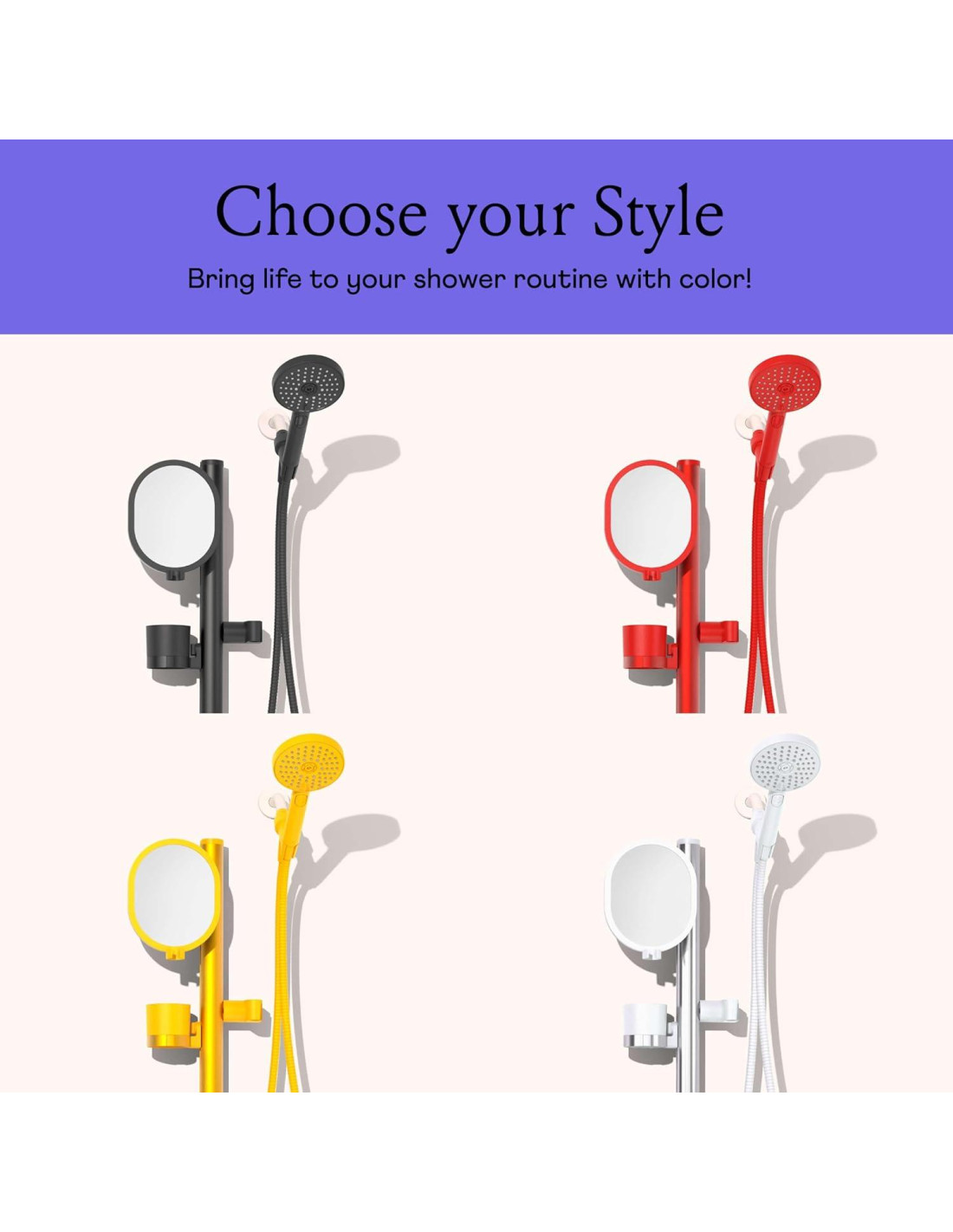 Somos una marca de duchas creada con inquilinos creativos e inspirados en mente. Queremos que tu espacio, sin importar cuán grande o pequeño, cuán a largo plazo o corto, se sienta como un hogar. Todo lo que necesitas está incluido en nuestros kits para que puedas hacerlo tú mismo, con un poco de ayuda de sproos! Agua pura y limpia con la libertad de una ducha de mano. La actualización de ducha definitiva que cualquiera puede instalar. Agrega un toque de color a cualquier ducha. La ducha puede ser un lugar solitario. Pero nuestro espejo tiene un ingenioso reservorio trasero para asegurarse de que nunca se empañe, así que siempre tendrás una vista clara de ti para hacerte compañía. ¿Estante para selfies, alguien? Suficiente espacio para 2 botellas grandes o unas cuantas más pequeñas. Y un gancho en la parte delantera mantiene tu esponja en su máxima expresión. Con una barra deslizante de 61 cm puedes posicionar tu ducha justo donde la quieres y tus accesorios pueden colocarse en cualquier lugar de la barra. ¿Cerveza en la ducha? ¿Una plantita amigable? ¿Cepillo de dientes y pasta? ¡Tú decides! Solo toca nuestro botón de pausa para reducir el flujo de agua a un goteo. Bueno para ahorrar agua, bañar mascotas, regar plantas, o simplemente asegurarte de que tus compañeros de cuarto escuchen tu increíble canto en la ducha. El chorro es fuerte y enfocado, es la manera perfecta de invigorarte y comenzar tu día. Monzón es como un aguacero torrencial, perfecto para lavar el día y domar esos rizos exuberantes. Nube es suave y cálido como una lluvia tropical, te dejará sintiéndote relajado y rejuvenecido. Manguera de ducha de alta calidad, flexible y extra larga (178 cm) en un color a juego. Boquillas de spray de silicona premium para fácil limpieza. Soporte de ducha de mano pivotante. Nuestro set Lookin' Good fue creado pensando en ti. Personaliza tu experiencia de ducha con color y función.