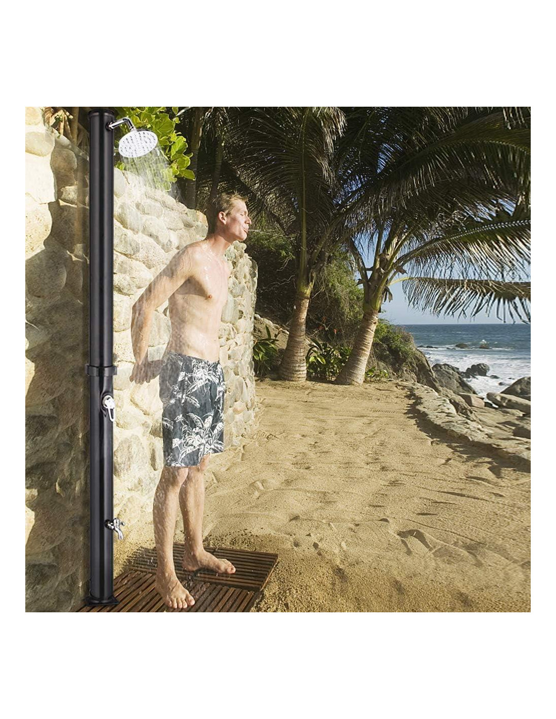 - [Construcción Duradera y Estable] La ducha solar de pie al aire libre es lo suficientemente resistente para soportar rasguños e insolación, proporcionando un disfrute a largo plazo. La construcción de latón no corrosivo y PVC te permite tomar una ducha refrescante en tu jardín o junto a tu piscina antes o después de nadar.