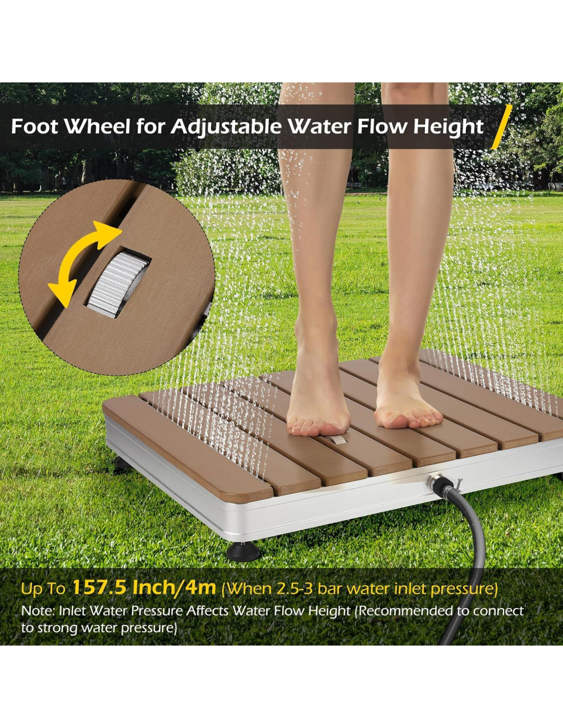 - Altura de Flujo de Agua Ajustable de 157.5 Pulgadas (400 cm) - La rueda operada por pie incorporada permite un fácil control de la altura del flujo de agua, el agua puede alcanzar una altura de hasta 157.5 pulgadas (400 cm), regar plantas o enjuagarse después de un baño es más fácil y menos laborioso. La presión de agua de entrada afectará la altura del flujo de agua (Se recomienda conectar a una presión de agua fuerte).