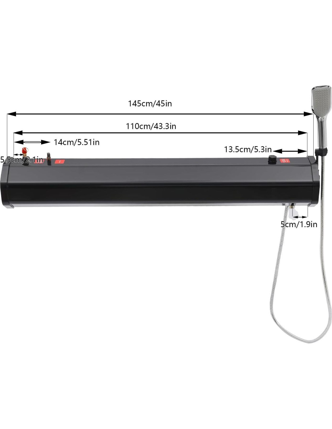 - Apariencia moderna El tanque de agua negro y las tuberías de agua plateadas hacen que esta ducha de camping se vea muy moderna, y puede adaptarse a vehículos de múltiples colores y modelos.