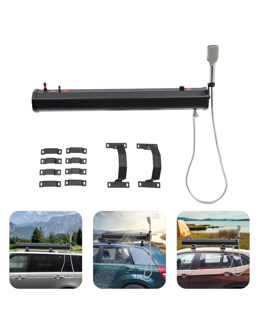 Descripción Después de experimentar un surf alegre, el agua de mar en tu cuerpo debe ser lavada inmediatamente, pero no todas las playas tienen lugares para el lavado con agua dulce. Así que por favor prueba nuestra ducha de carretera, que tiene un gran tanque de agua y está equipada con una ducha y manguera, permitiéndote almacenar suficiente agua dulce para un enjuague flexible. Ya sea viajando o trabajando, es un excelente asistente. Aplicación Esta ducha de carretera montada en el techo se puede instalar en el portaequipajes de barra transversal del techo, portaequipajes de plataforma, tienda de techo, caja de equipaje de techo, marco de equipaje de techo de SUVs, sedanes, RVs, camiones, etc. Se utiliza para actividades de lavado como surf, viajes a la playa, camping, off-road, pesca, caza y proyectos de construcción. Especificación Material: PVC, Cobre, ABS Proceso: Galvanoplastia Color: Negro+Plata Tipo de Montaje: Montaje en Techo Requisito de Ensamblaje: Sí Longitud de la Manguera de Agua: 1.7m (5.58ft) Espaciado de Barra Transversal Aplicable: 56-90mm (2.2-3.54in) Presión Estándar de Válvula de Seguridad: 1.6bar Temperatura Máx.: 60C (140F) Capacidad del Tanque de Agua: 18L (4.76gal) Tamaño del Producto: 18*14.5*109.5cm (7*5.7*43.1in) Peso Neto: 5kg (11.02lbs) Paquete Incluido 1 * Tanque de Agua 1 * Manguera de Agua 1 * Cabezal de Ducha 1 * Bolsa de Almacenamiento 1 * Instrucción en Inglés Otros Accesorios para Instalación Notas Por favor lee completamente el manual de operación antes de usar. Y presta especial atención a las instrucciones de seguridad incluidas. Antes de agregar agua al tanque de agua, por favor levanta y tira de la palanca de la válvula de seguridad para liberar toda la presión en el tanque.