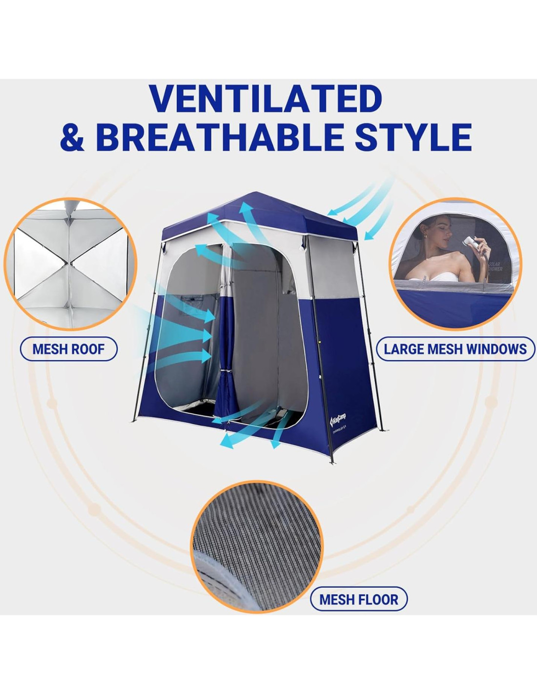 - [TIENDA DE PRIVACIDAD IMPERMEABLE] Nuestra tienda portátil ligera pero robusta está fabricada con hierro de alta resistencia, oxford impermeable PU 1002mm y malla transpirable. Con una cubierta de lluvia removible que protege contra el sol y la lluvia, y ventanas y techo estratégicamente colocados para una excelente ventilación, disfruta de una comodidad y privacidad superiores.